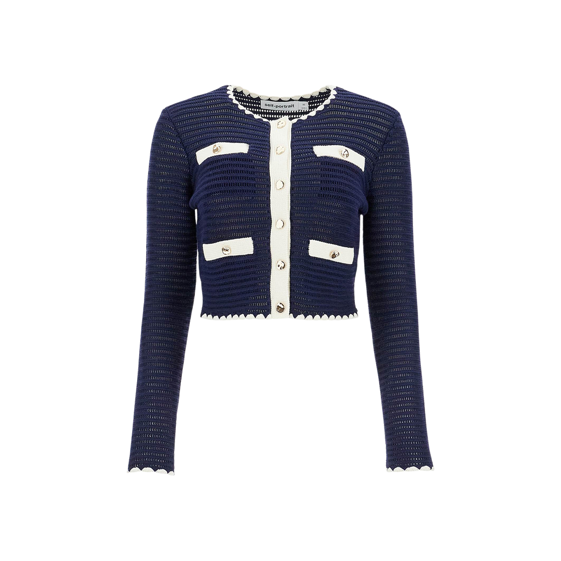 (W) 셀프 포트레이트 크로쉐 콘트라스트 트리밍 가디건 블루
