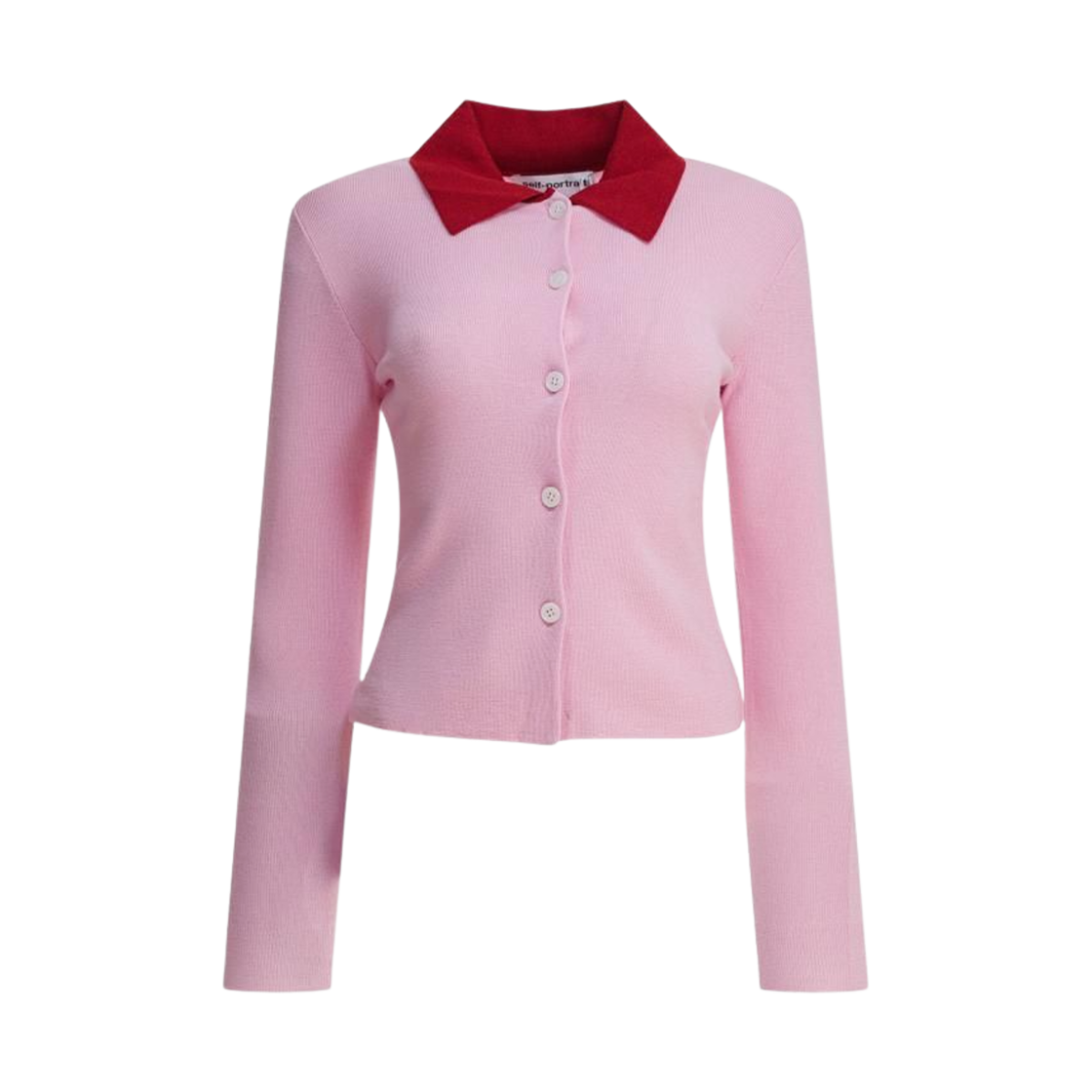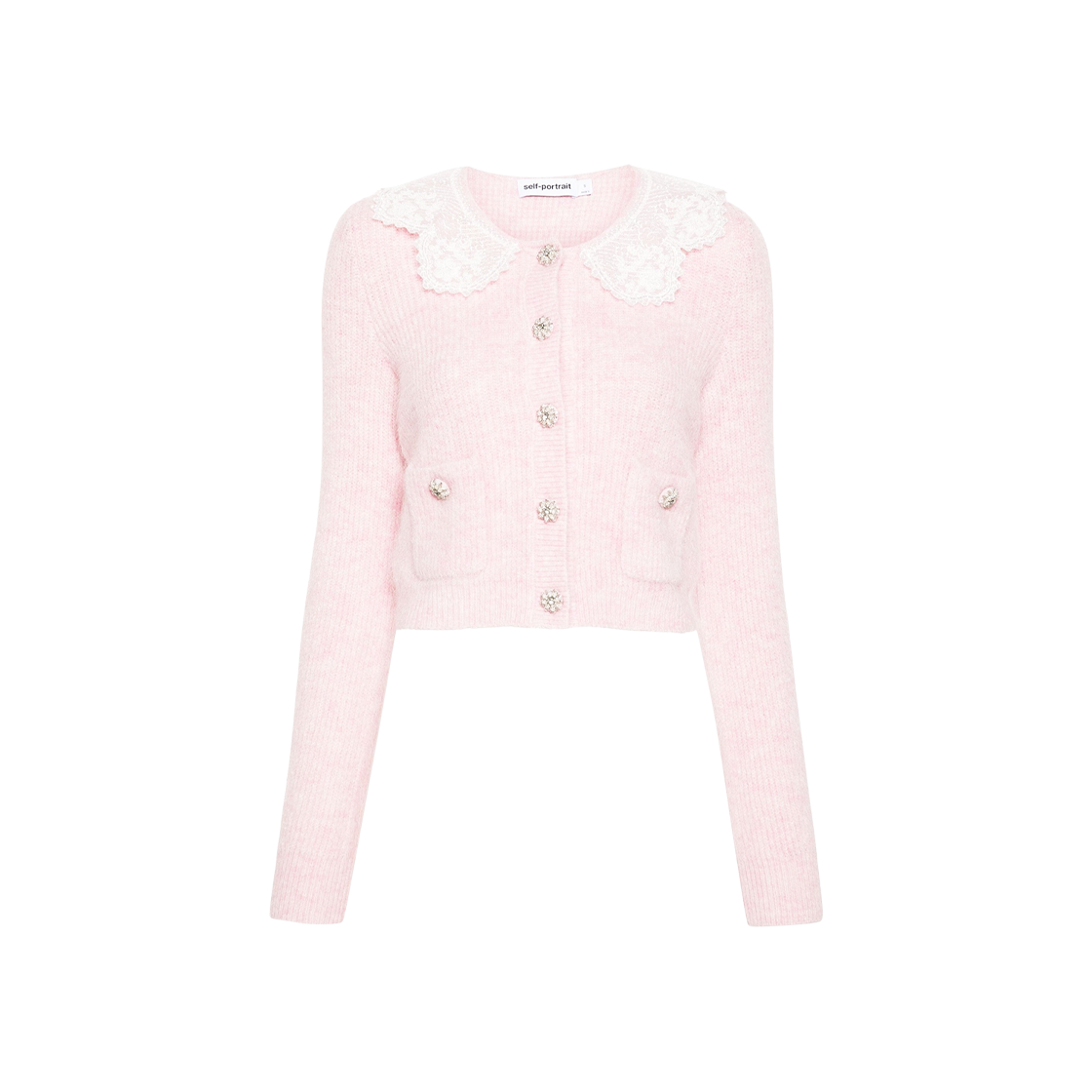 (W) 셀프 포트레이트 니트 크롭 가디건 핑크