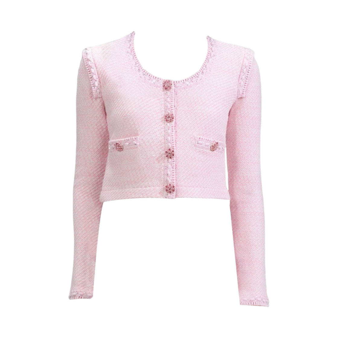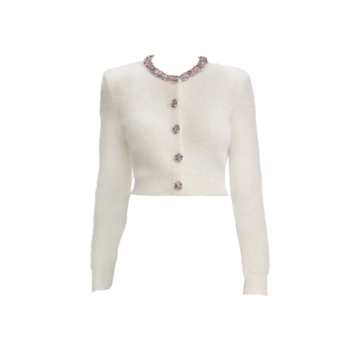 (W) 셀프 포트레이트 크리스탈 트림 가디건 라일락