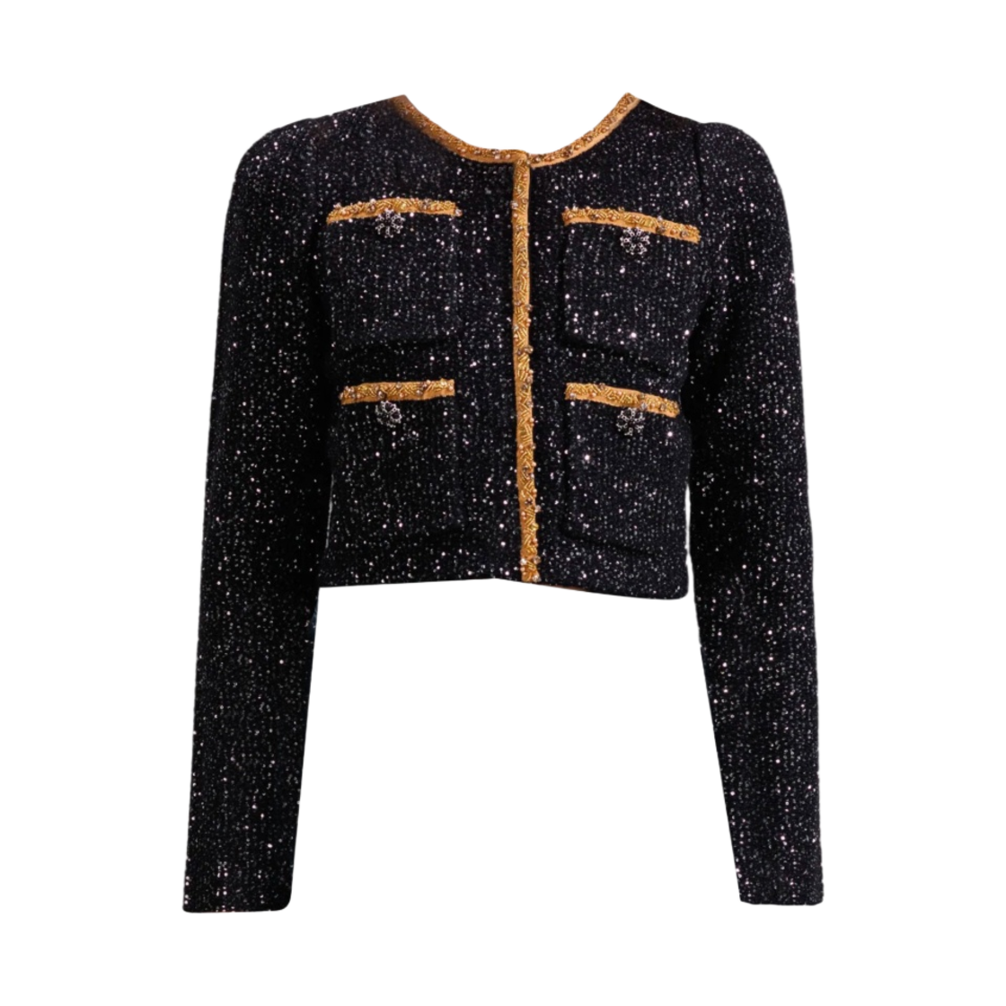 (W) 셀프 포트레이트 시퀸 니트 크롭 가디건 블랙