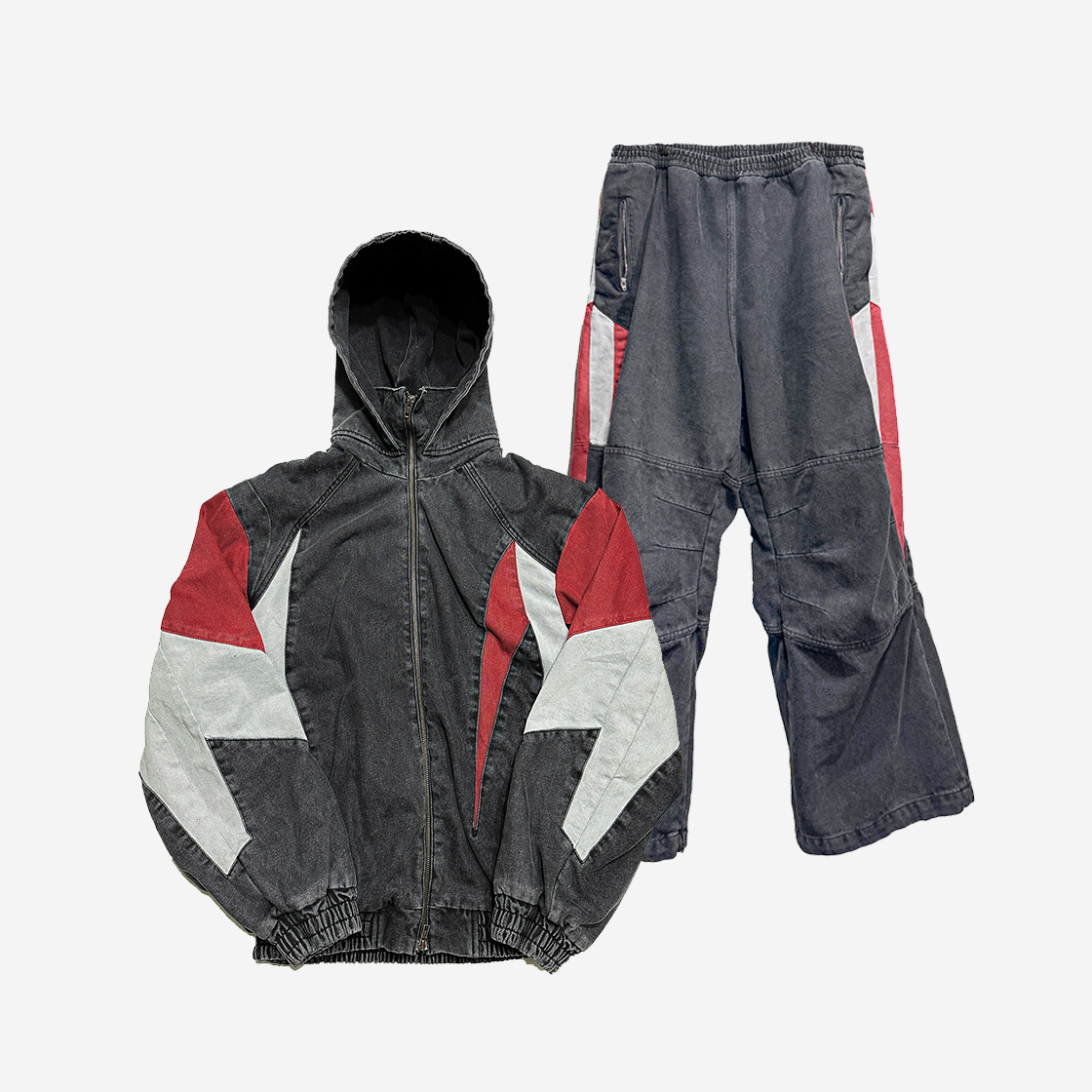 큐티에잇 가먼츠 레트로 트랙 셋업 블랙차콜