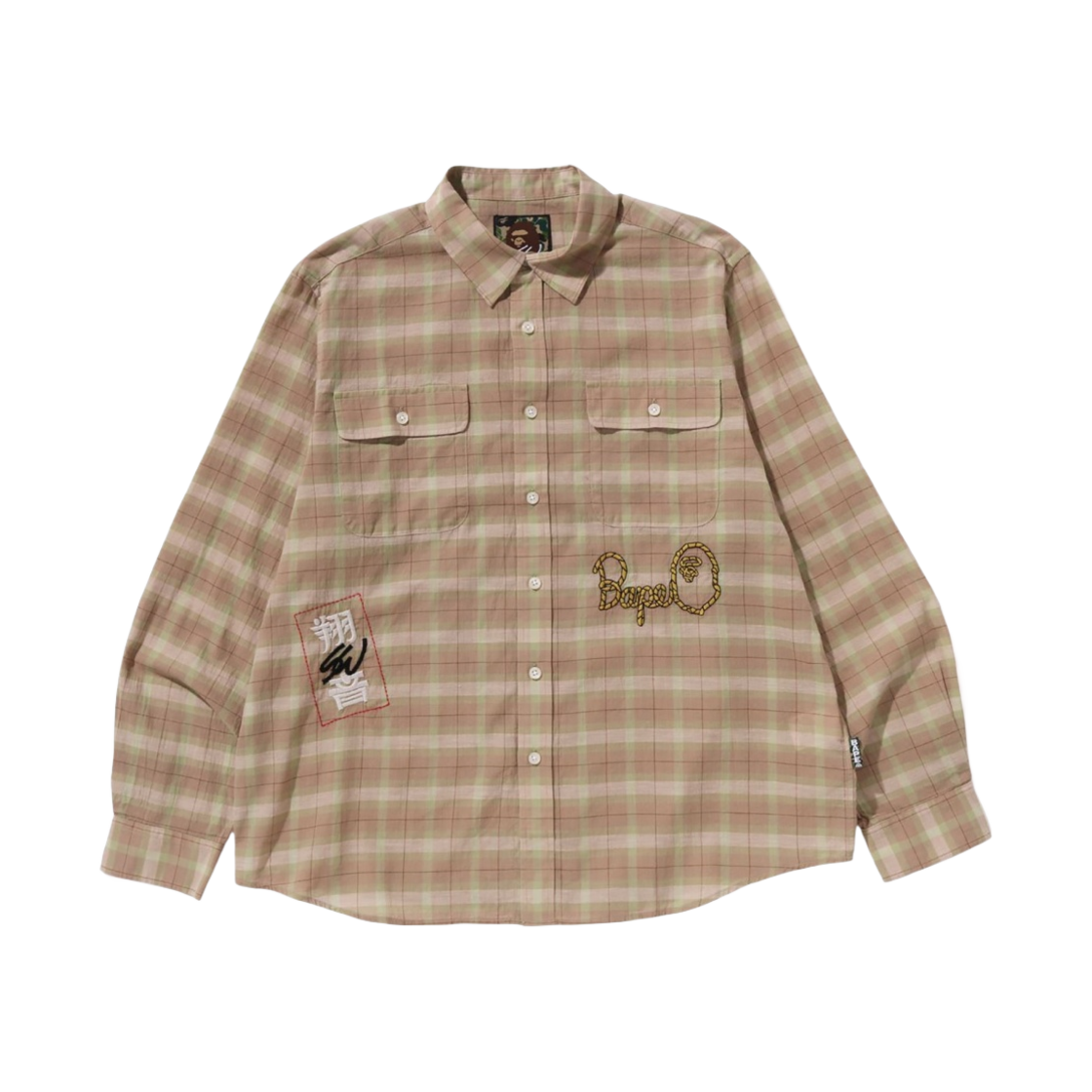 베이프 x 션 우더스푼 자수 체크 셔츠 베이지