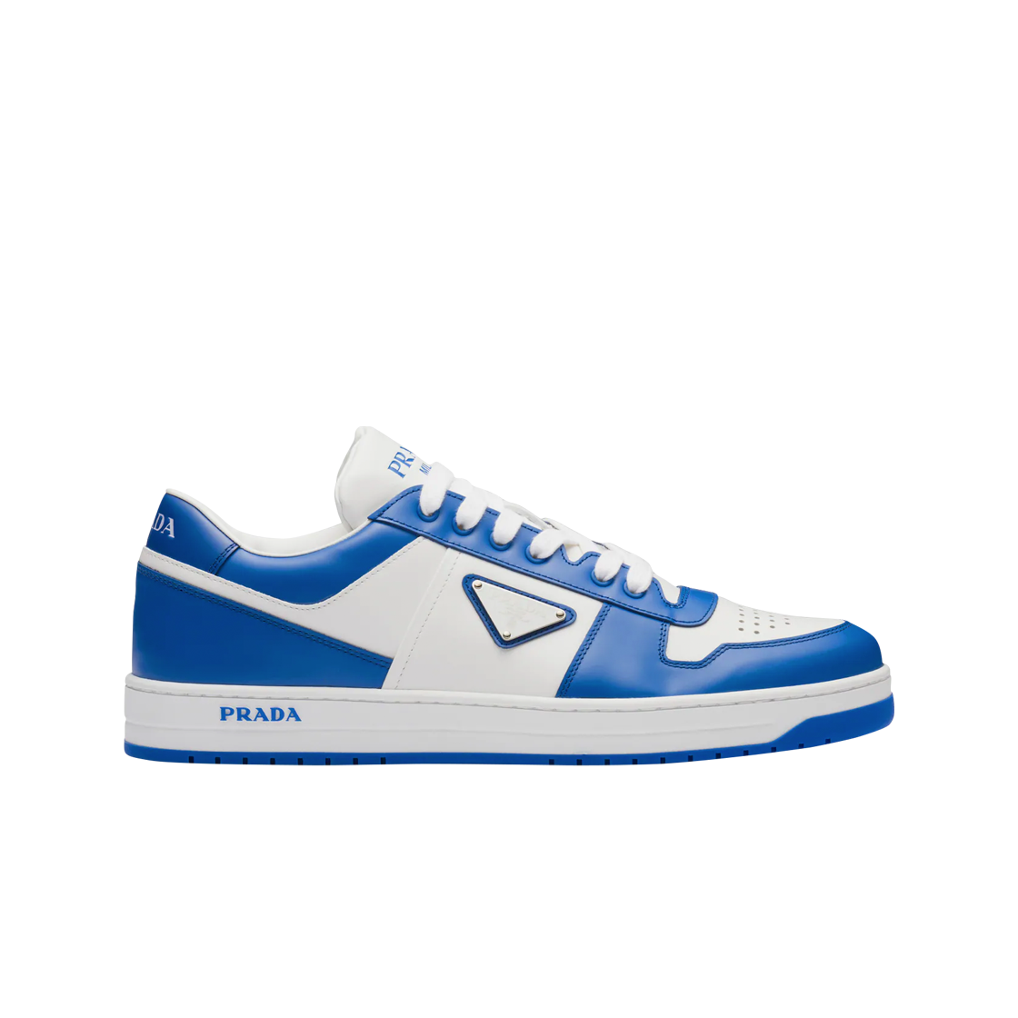 프라다 다운타운 레더 스니커즈 화이트 코발트 블루