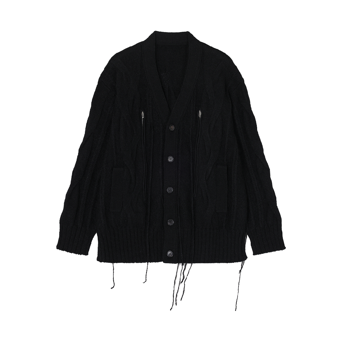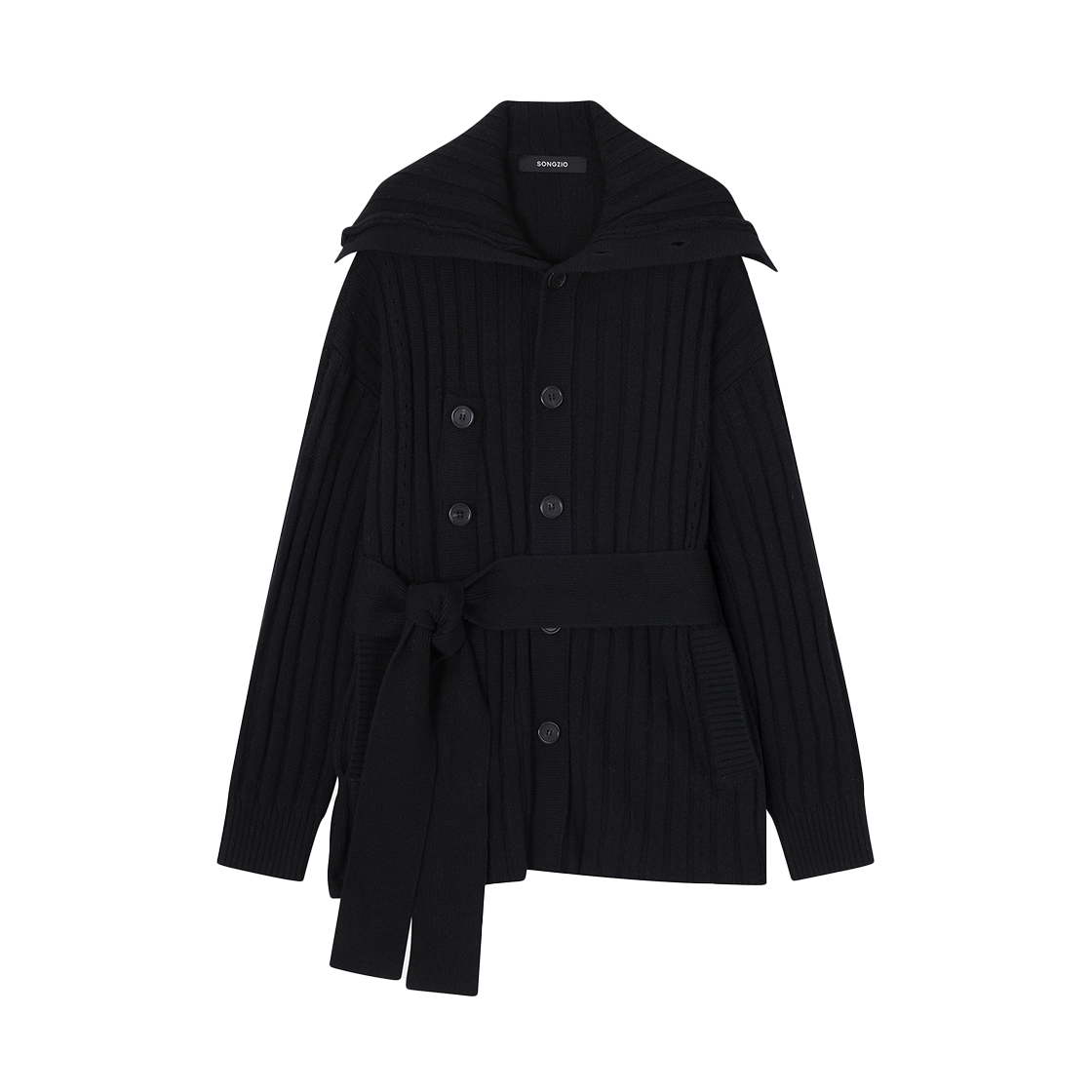 송지오 컬렉션 헤비 부클 슬릿 가디건 블랙