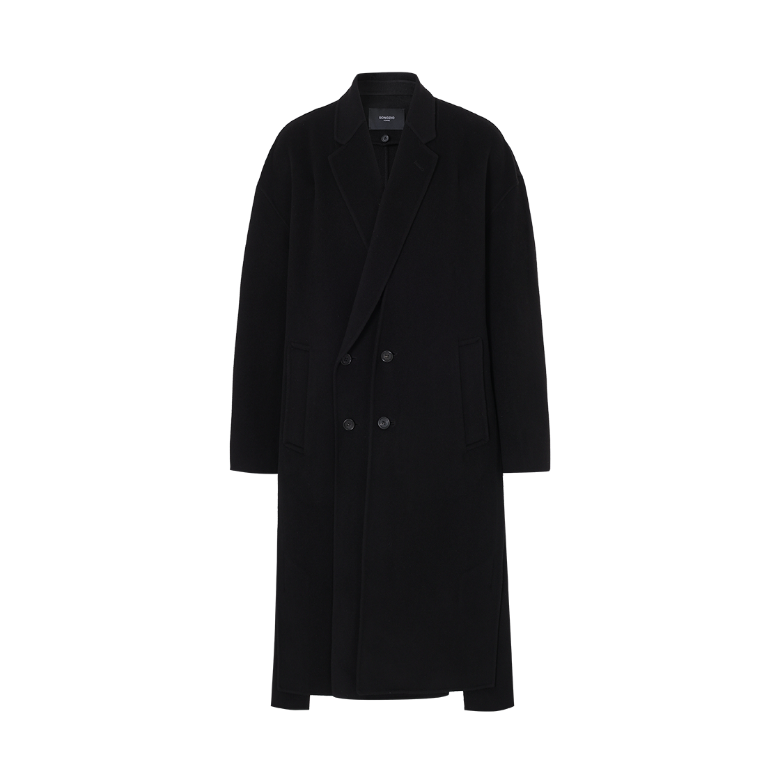 송지오 컬렉션 바이어스 컷 아웃 더블 블레스티드 코트 블랙