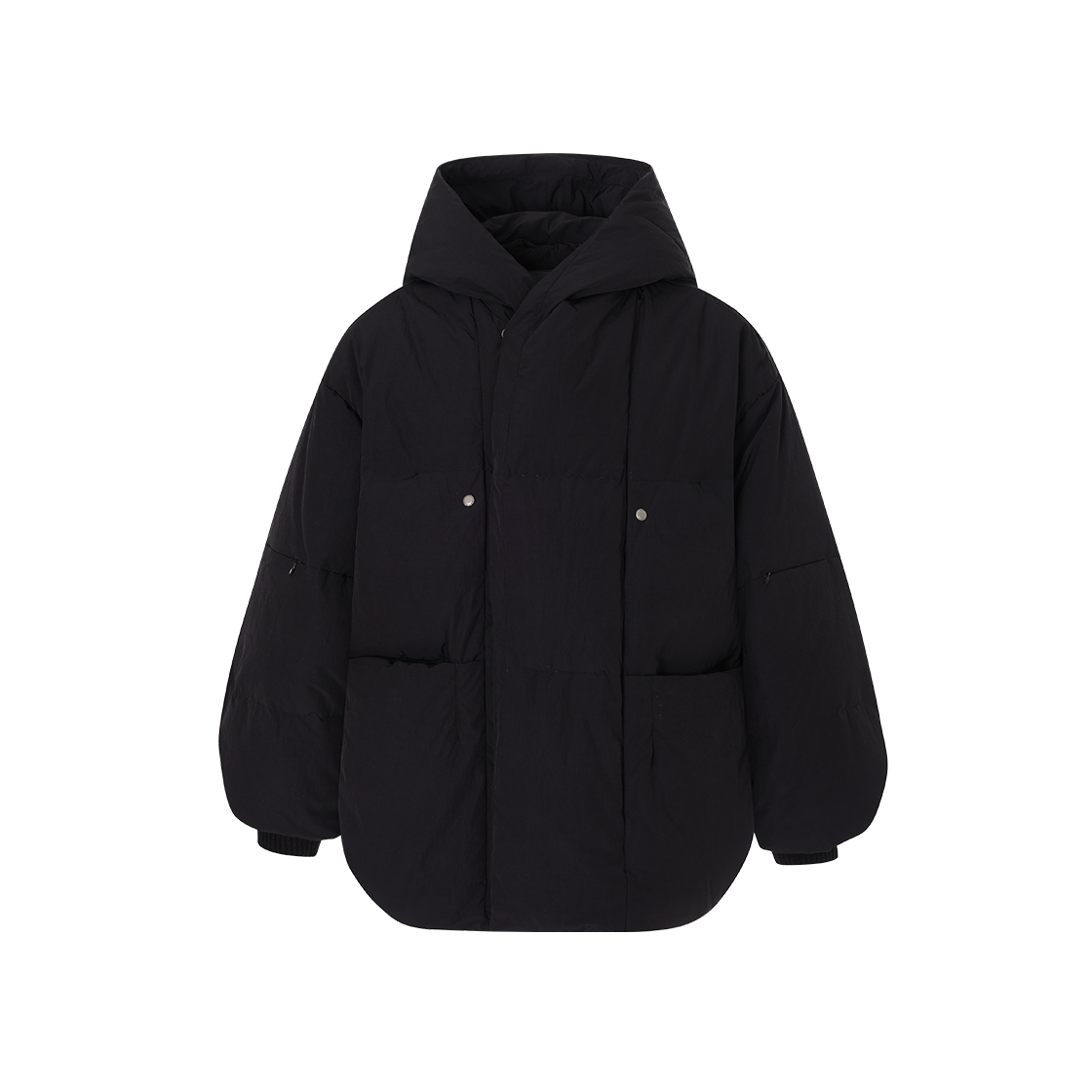 송지오 옴므 볼륨 코쿤 후드 다운 점퍼 블랙
