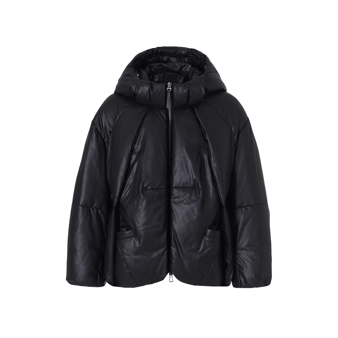 송지오옴므 멀티 플리츠 후드 다운 점퍼 블랙
