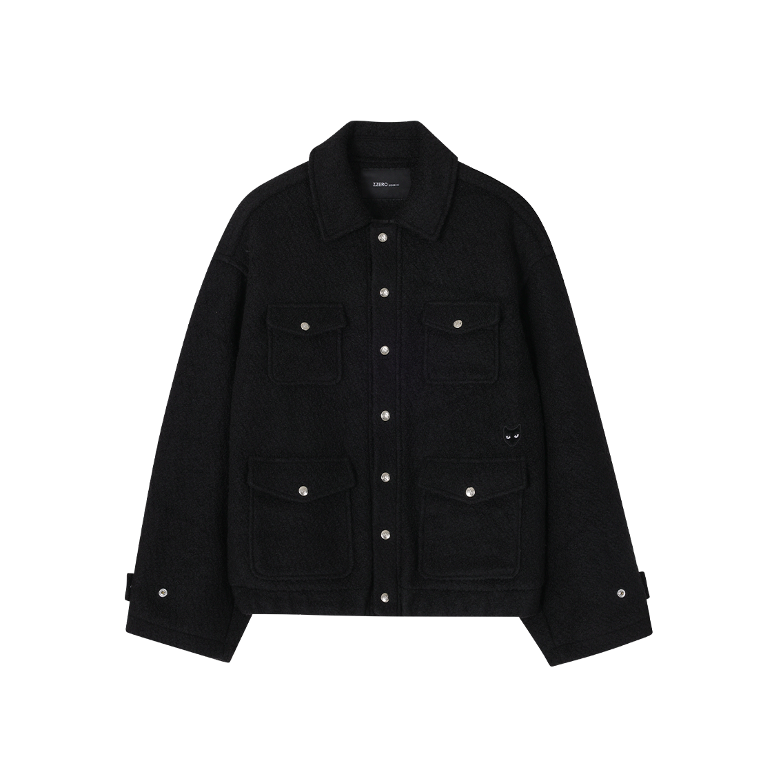지제로 부클 멀티 포켓 카라넥 자켓 블랙