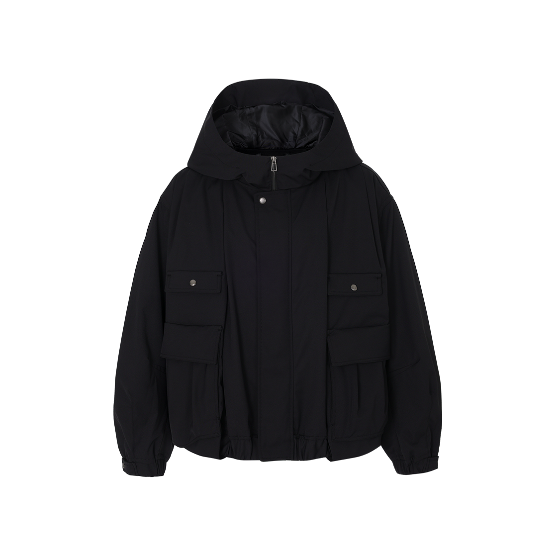 송지오옴므 멀티 플리츠 후드 다운 점퍼 블랙