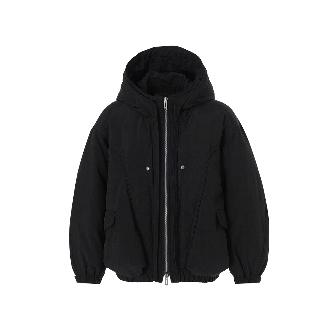 송지오 옴므 볼륨 코쿤 후드 다운 점퍼 블랙