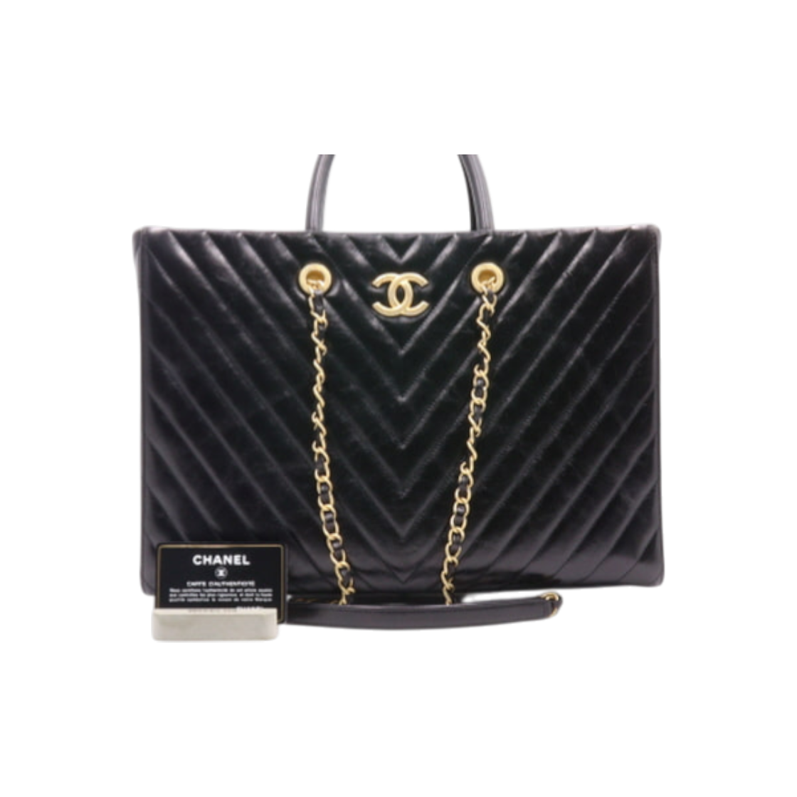 샤넬 A93525 블랙 카프스킨 쉐브론 라지 탑핸들 쇼퍼 토트백 겸 금장체인 숄더백 aa28259