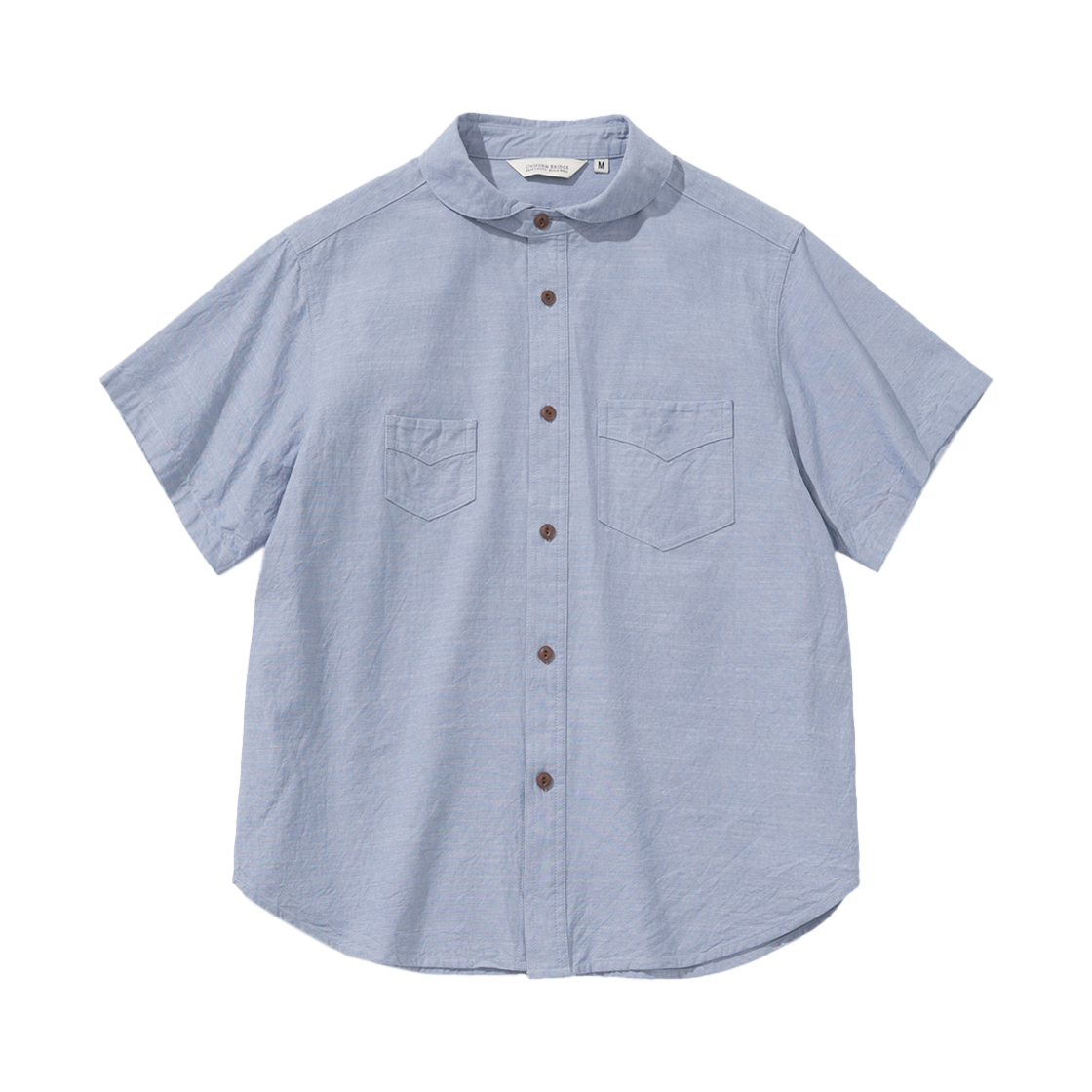 유니폼 브릿지 라운드 칼라 샴브레이 숏슬리브 셔츠 우먼 라이트 블루