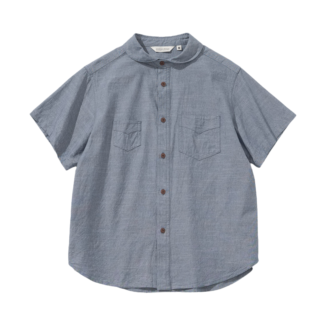 유니폼 브릿지 라운드 칼라 샴브레이 숏슬리브 셔츠 우먼 네이비