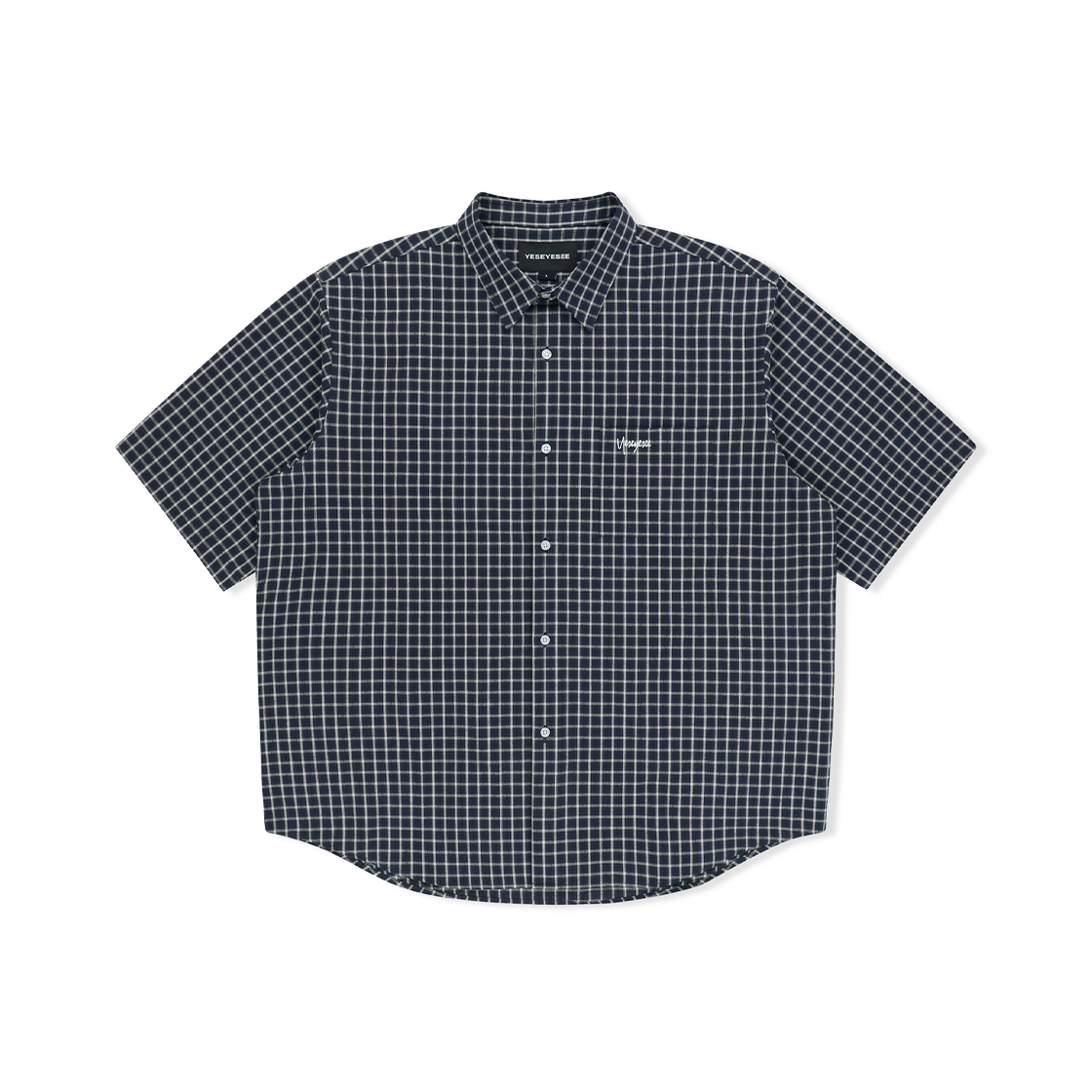 예스아이씨 예스 숏슬리브 체크 셔츠 네이비