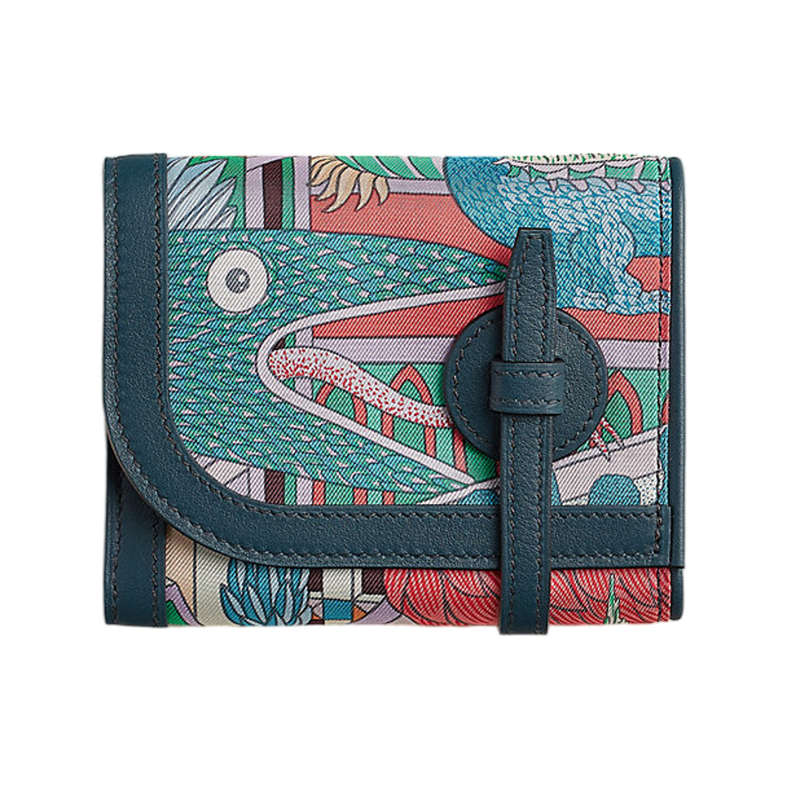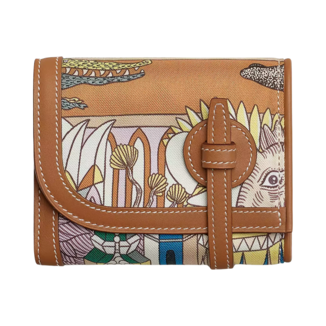 에르메스 아벡수아 컴팩트 월렛 스위프트 애니마폴리스 프린티드 실크 & 팔라듐 하드웨어 블루 드 프뤼스 오렌지 필드 미코노스
