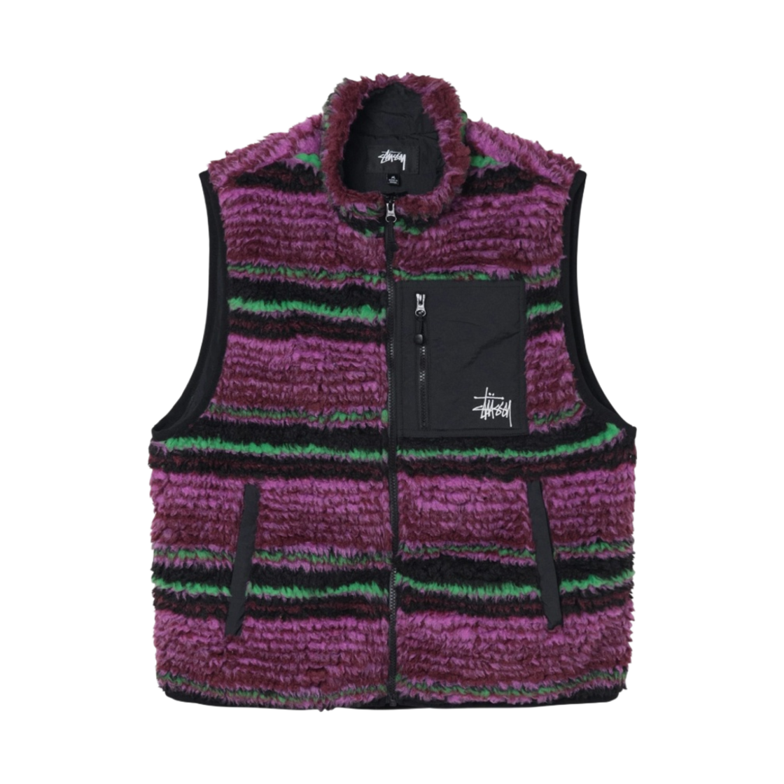 스투시 스트라이프 쉐르파 베스트 그레이프