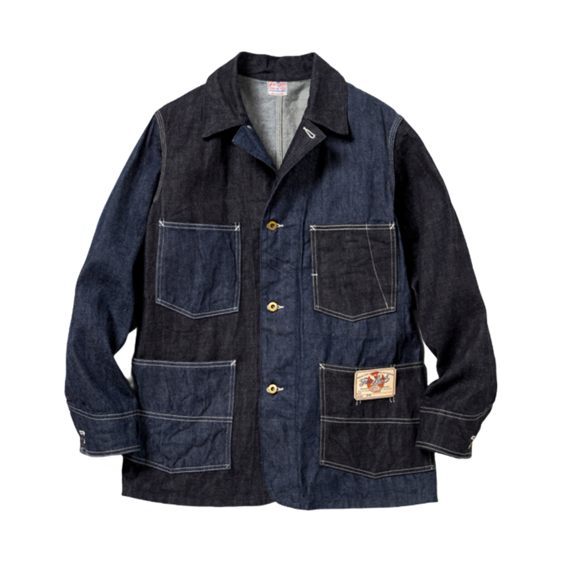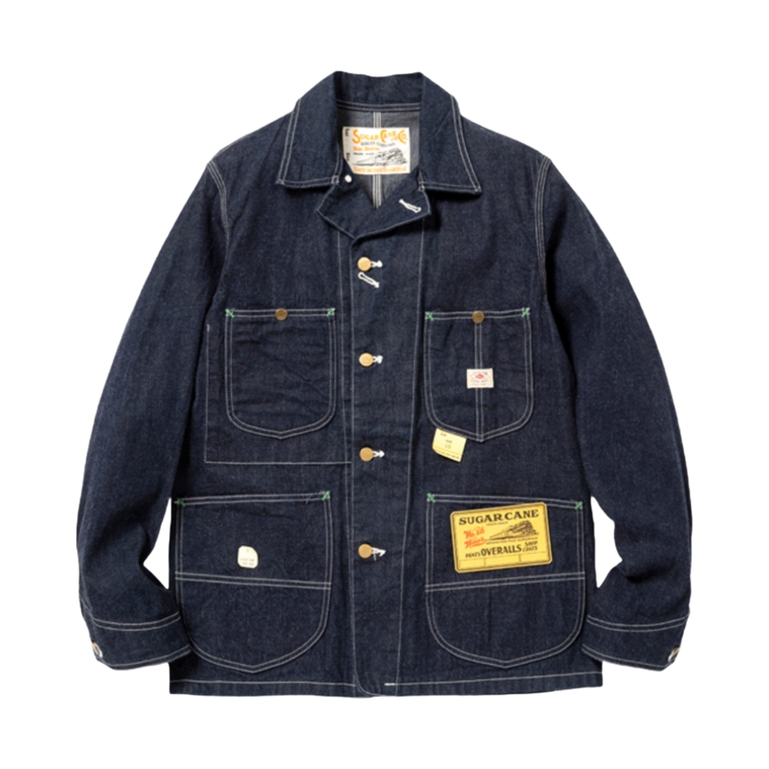 슈가 케인 프리 랜드 12온즈 블루 데님 워크 코트 원 워시