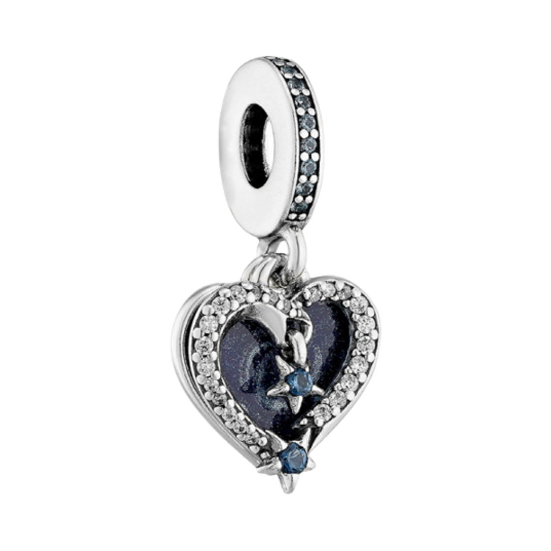 (W) 판도라 셀레셜 슈팅 스타 하트 더블 댕글 참 스털링 실버 블루