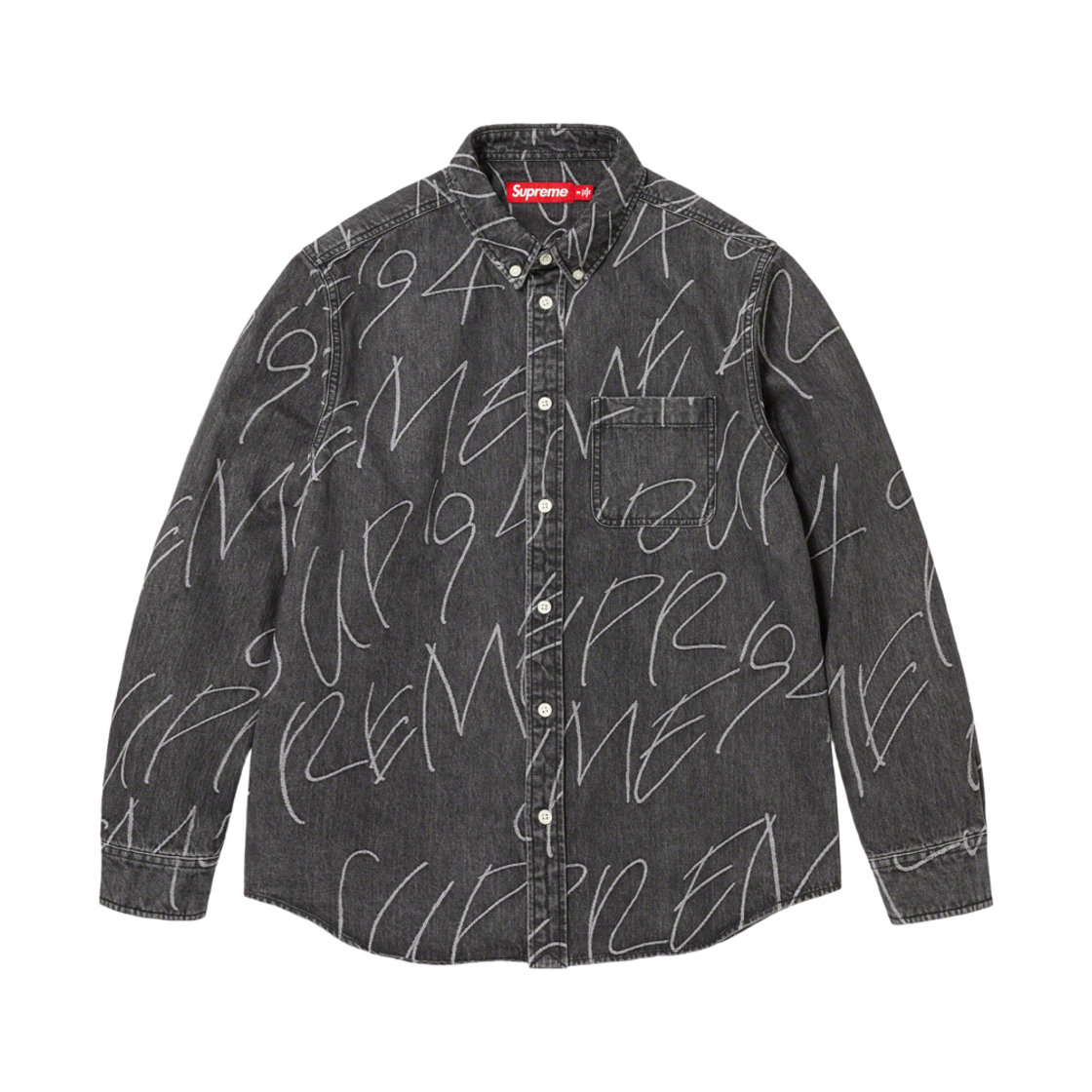 슈프림 핸드라이팅 자카드 데님 셔츠 워시드 블랙 - 23FW