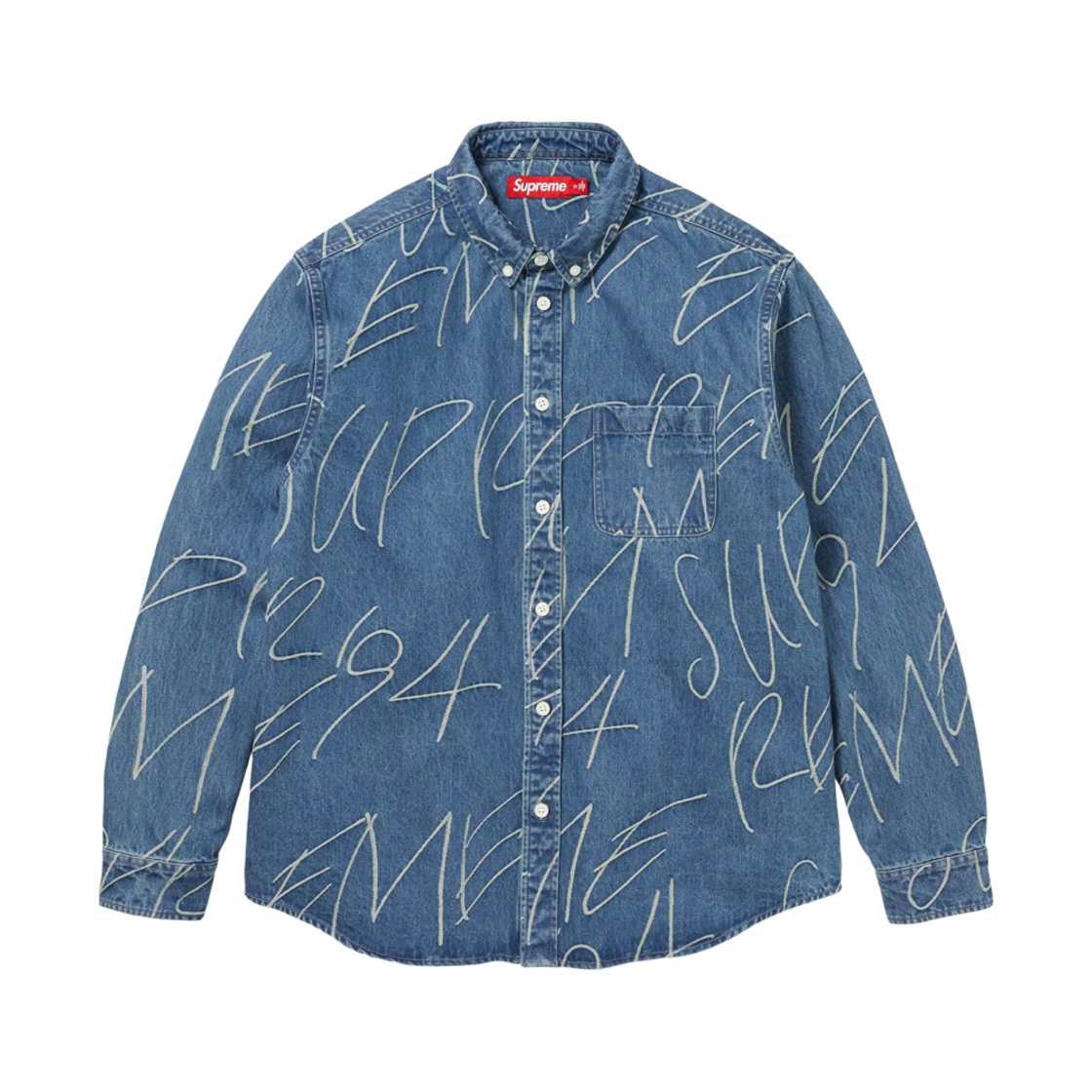슈프림 핸드라이팅 자카드 데님 셔츠 워시드 인디고 - 23FW