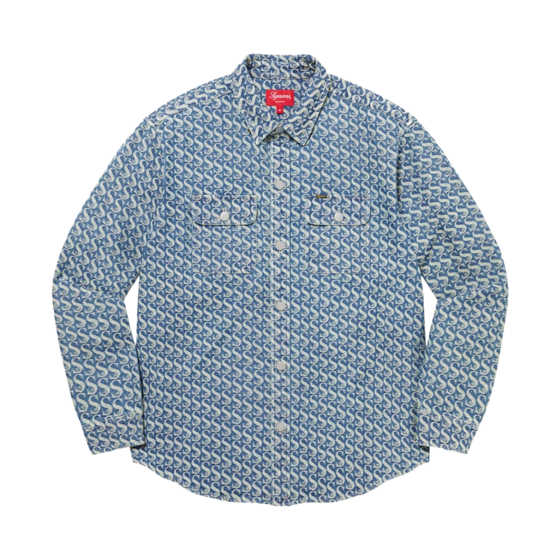 슈프림 트레이드마크 자카드 데님 셔츠 워시드 블루 - 23SS
