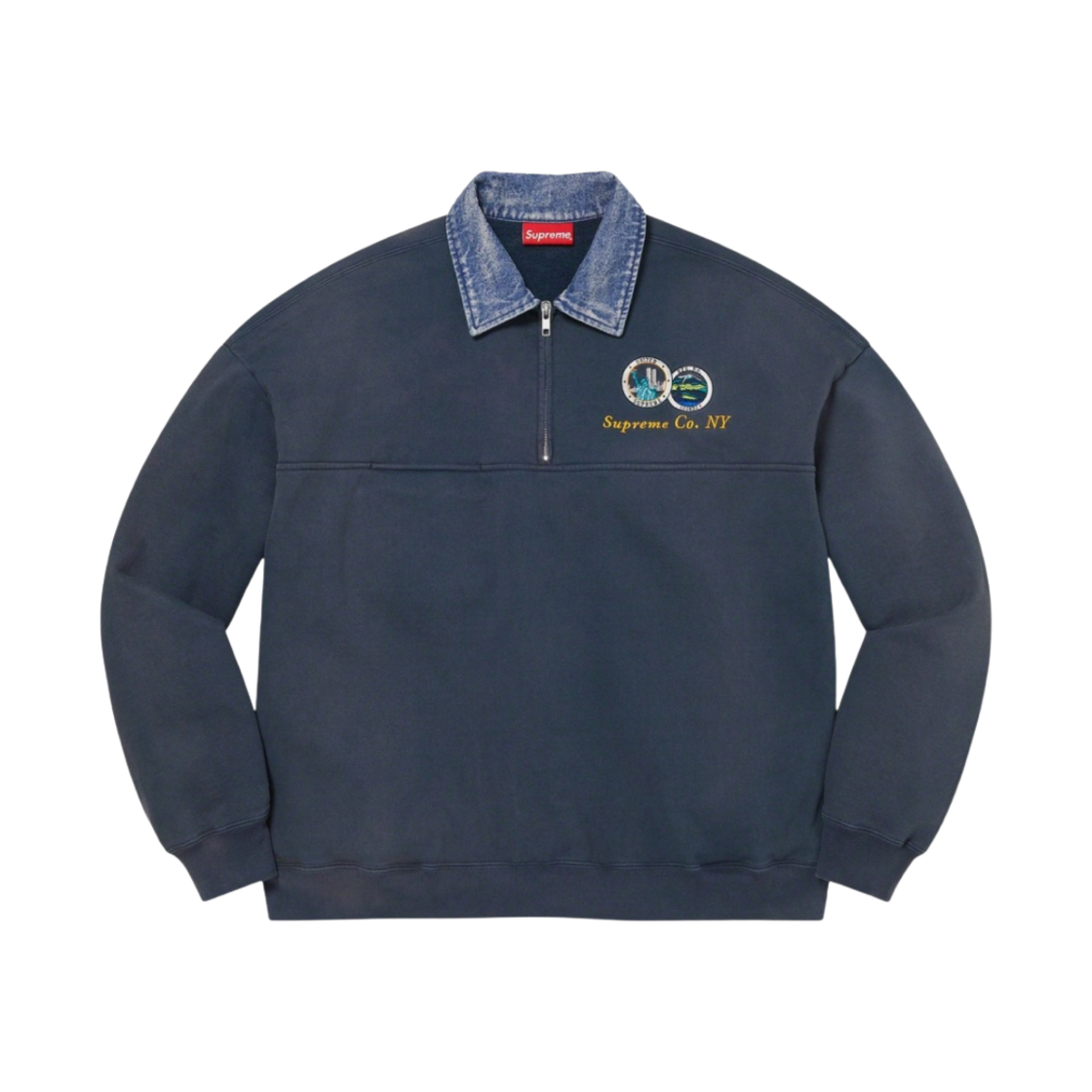 슈프림 데님 칼라 하프 집 스웨트셔츠 네이비 - 23SS
