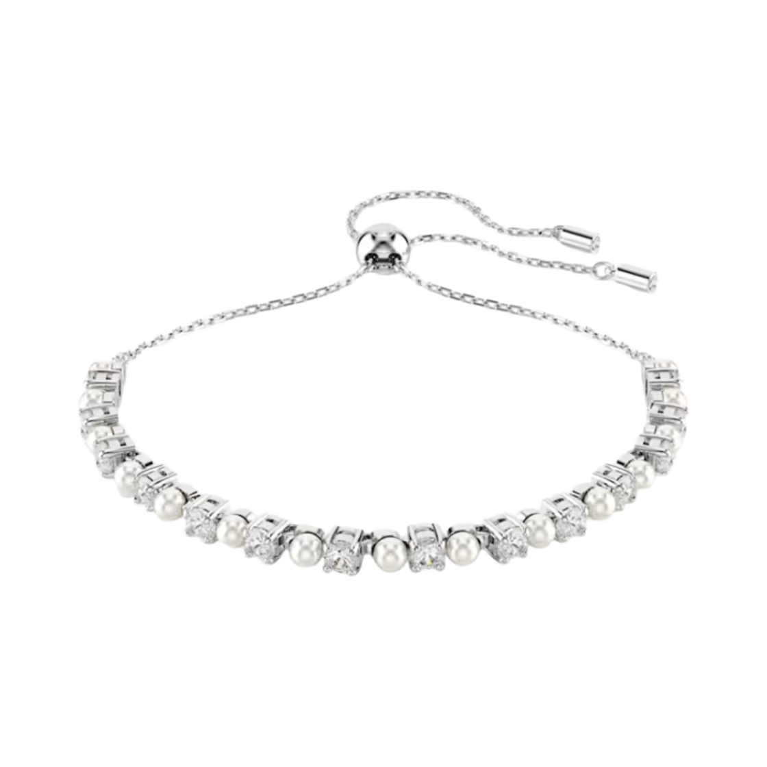 (W) 스와로브스키 매트릭스 브레이슬릿 크리스탈 펄 라운드 컷 화이트 로듐 플래팅
