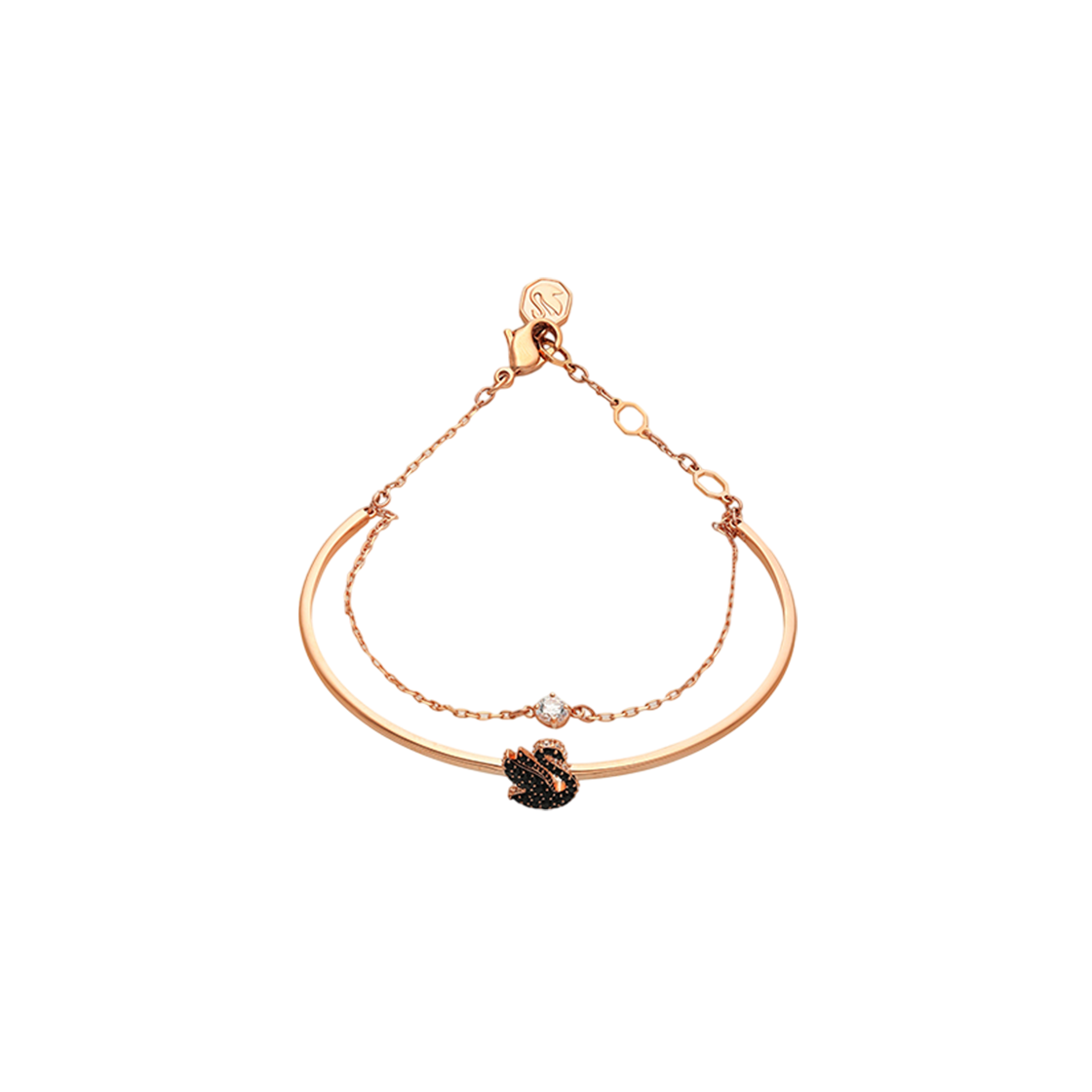 [13% 쿠폰] (W) 스와로브스키 스완 뱅글 블랙 로즈 골드 플래팅
