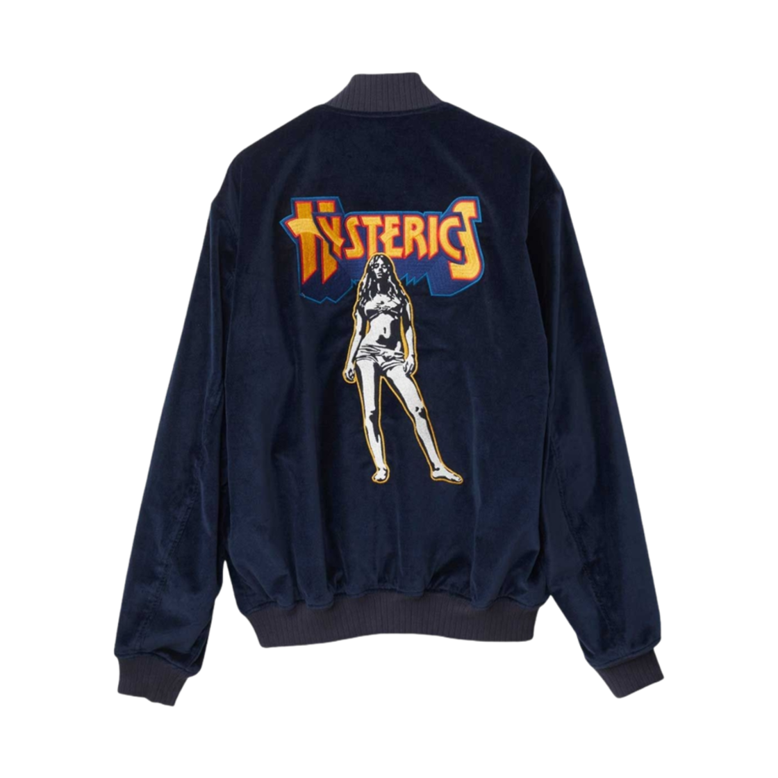 히스테릭 글래머 배드 애스 마마 자수 벨벳 스카잔 자켓 네이비