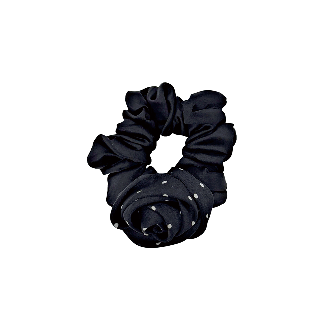 러브미몬스터 도트 새틴 장미 스크런치 블랙