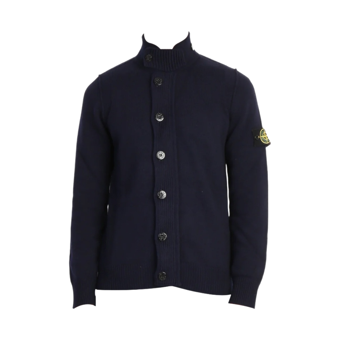 스톤 아일랜드 547A3 램스울 니트 가디건 네이비 블루 - 23FW
