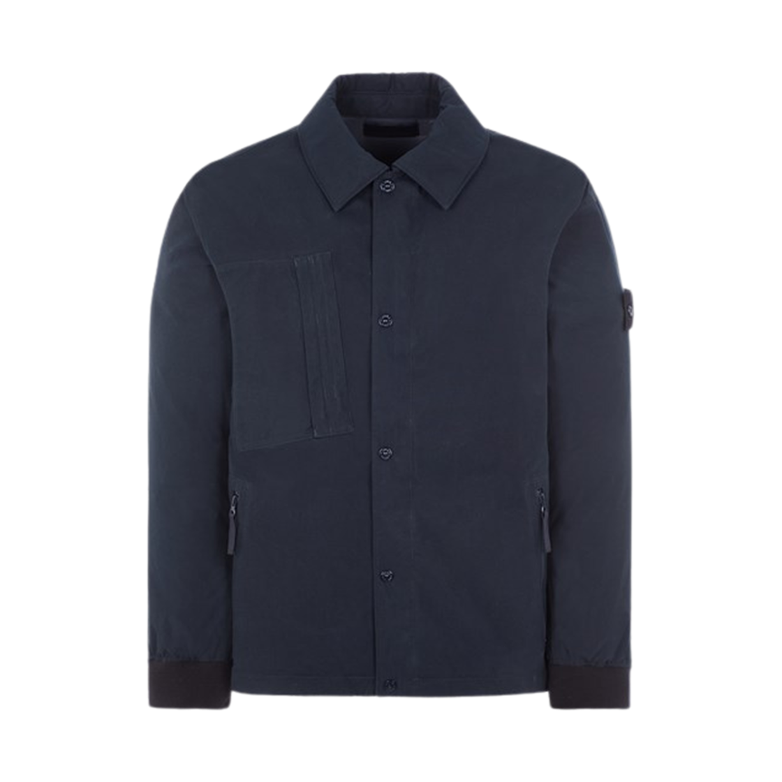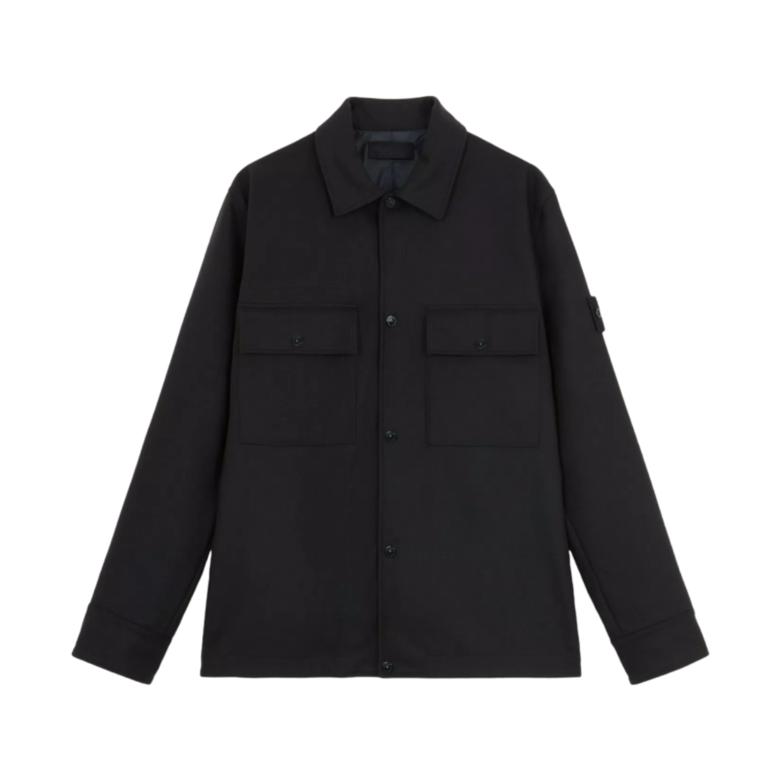 스톤 아일랜드 120F4 울 나일론 플란넬 스톤 아일랜드 고스트 피스 패디드 오버셔츠 안티드롭 앤 스냅 네이비 블루 - 24FW