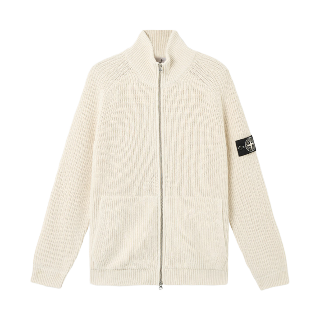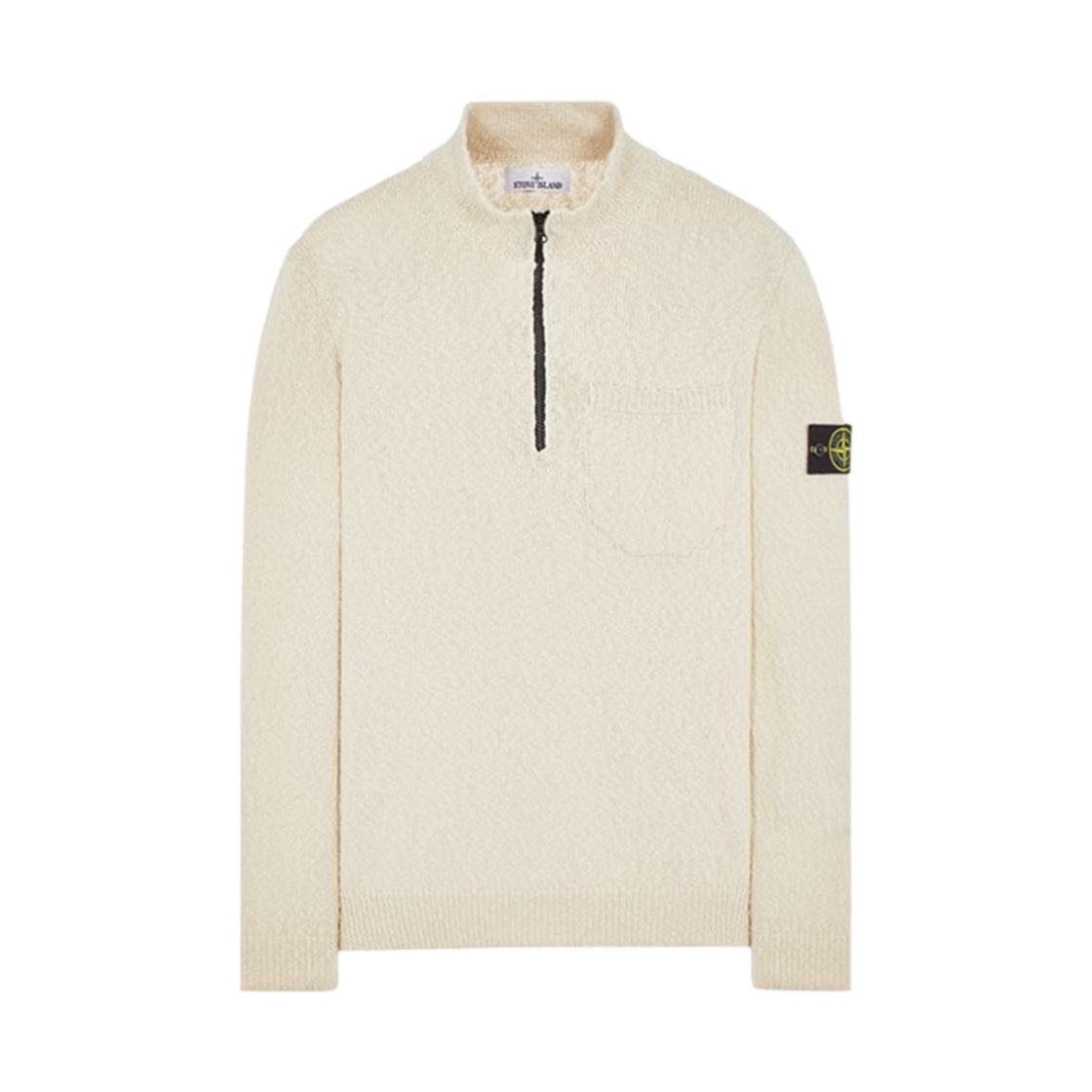스톤 아일랜드 563B1 언이븐 코튼 하프 집 니트 에크루 - 24SS