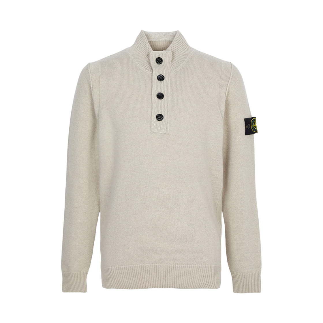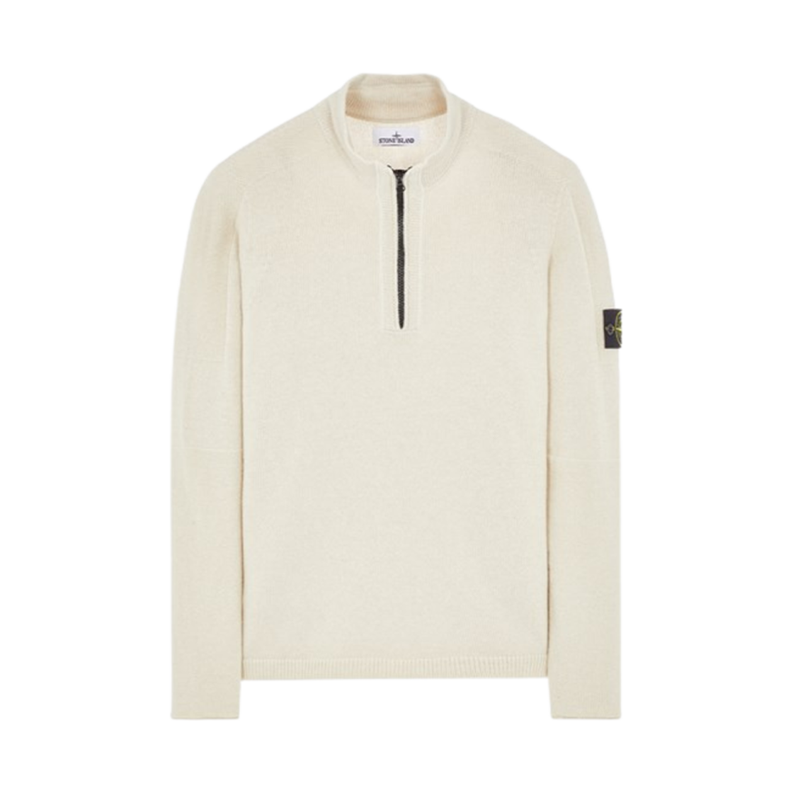 스톤 아일랜드 529A3 파틀리 스타킹 램스울 하프 집업 니트 스투코 - 23FW