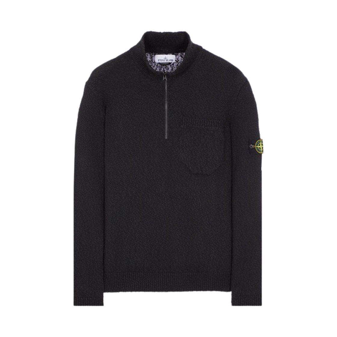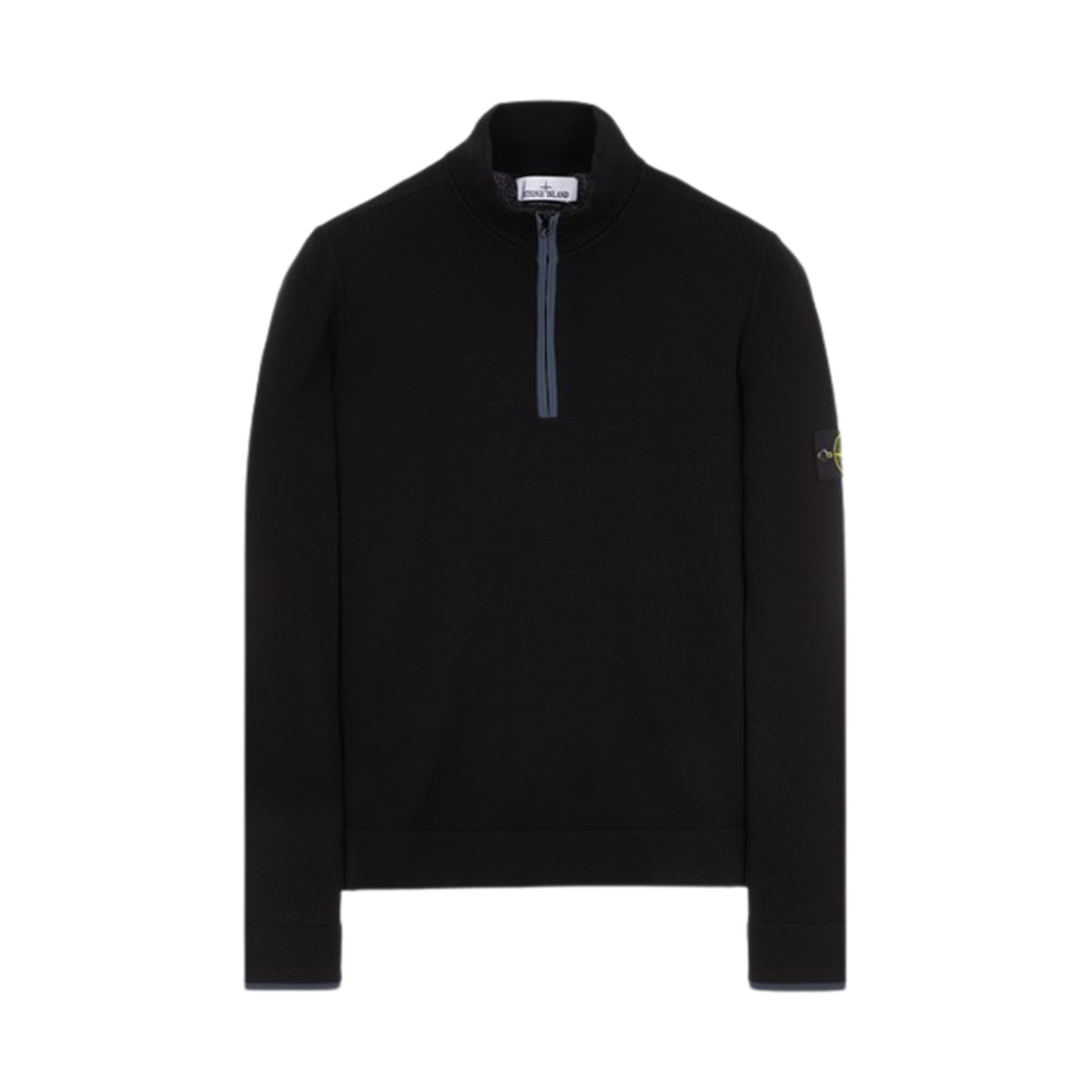 스톤 아일랜드 521A1 스트레치 울 하프 집업 니트 블랙 - 23FW