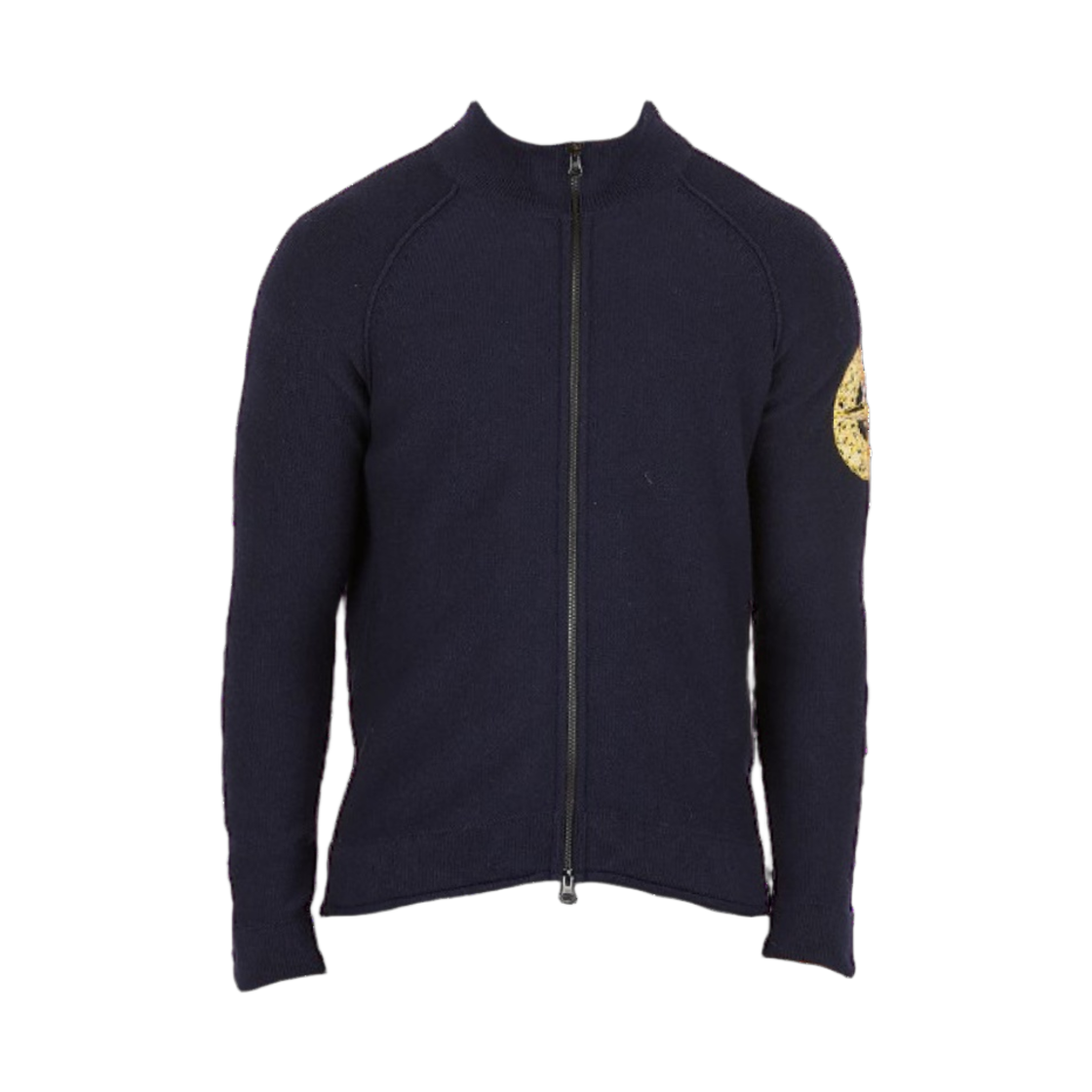 스톤 아일랜드 551A4 램스울 자수 풀 집업 가디건 네이비 블루 - 22FW