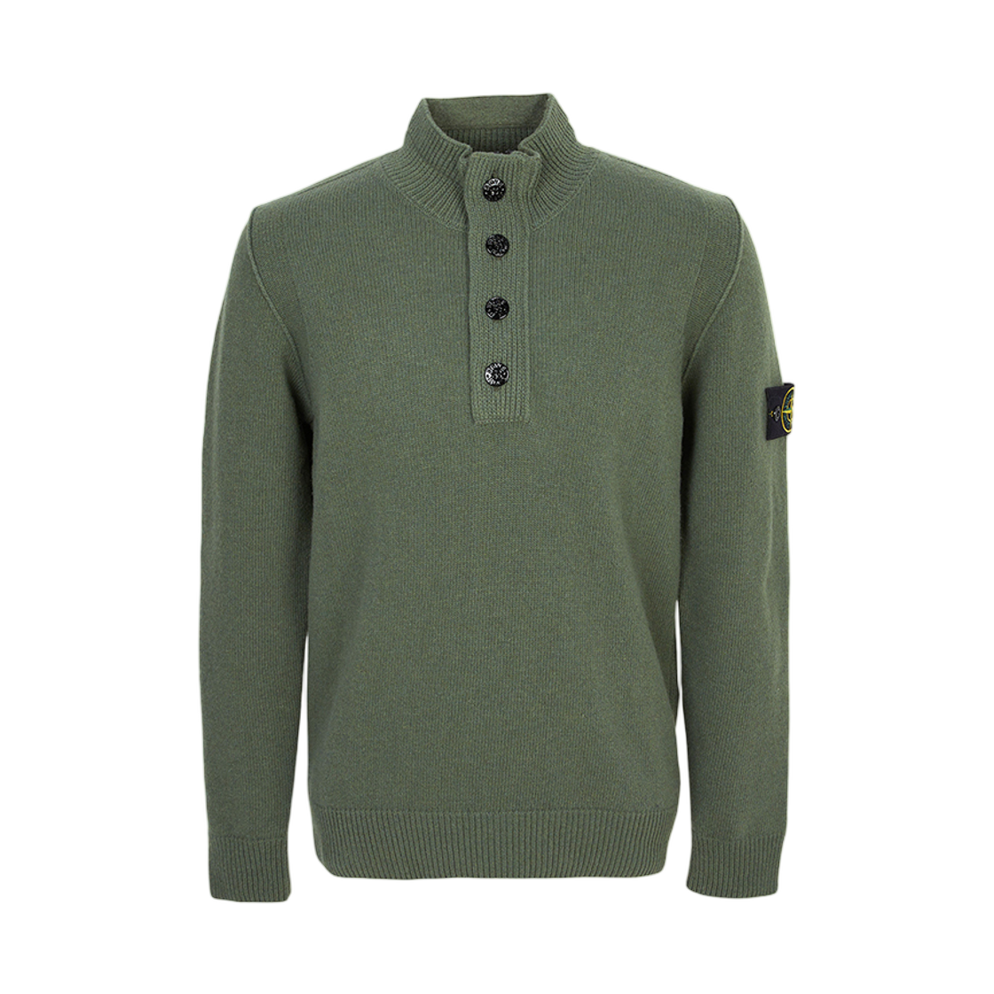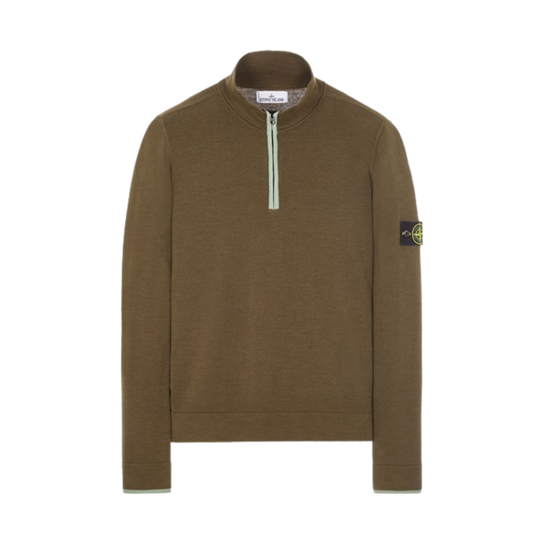 스톤 아일랜드 521A1 스트레치 울 하프 집업 니트 올리브 그린 - 23FW