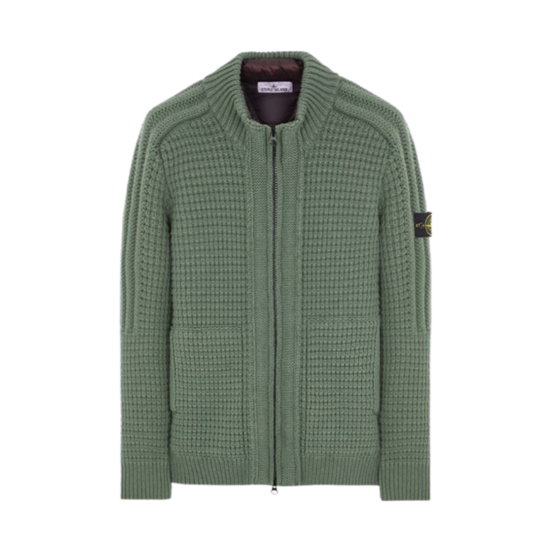 스톤 아일랜드 529A3 파틀리 스타킹 램스울 하프 집업 니트 세이지 그린 - 23FW