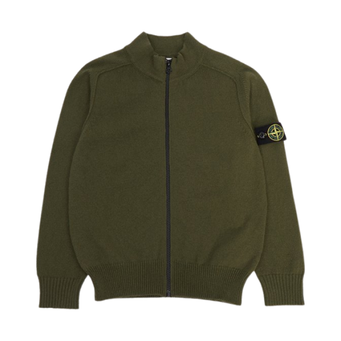 (키즈) 스톤 아일랜드 508D3 스트레치 울 하프 집업 니트 가디건 올리브 그린 - 24SS