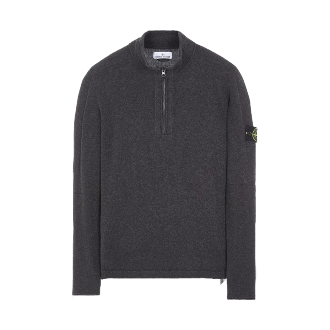 스톤 아일랜드 529A3 파틀리 스타킹 램스울 하프 집업 니트 스틸 그레이 멜란지 - 23FW