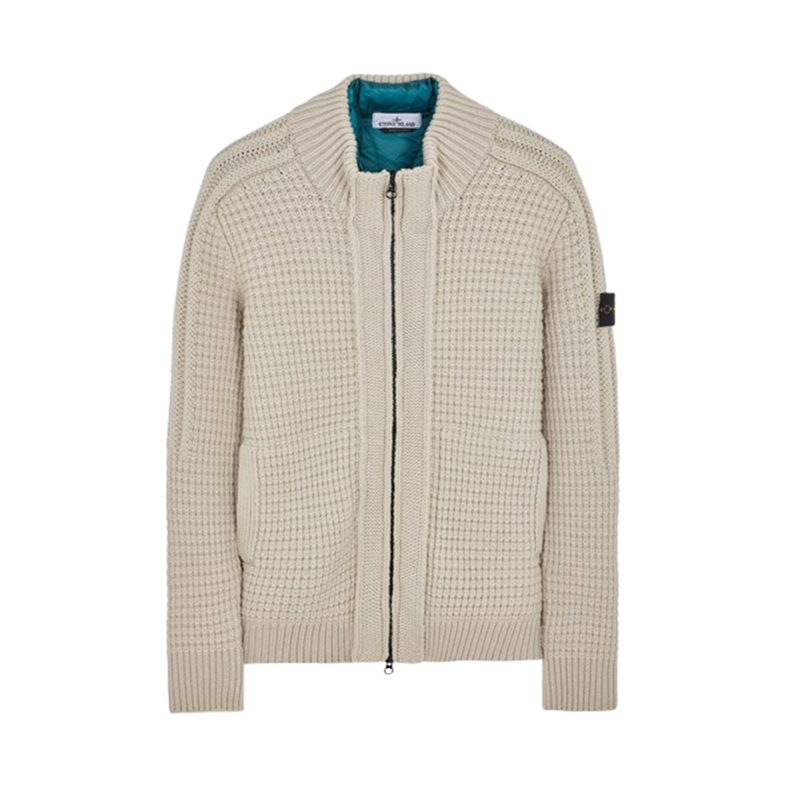 스톤 아일랜드 509A3 램스울 후드 가디건 니트 스투코 - 23FW
