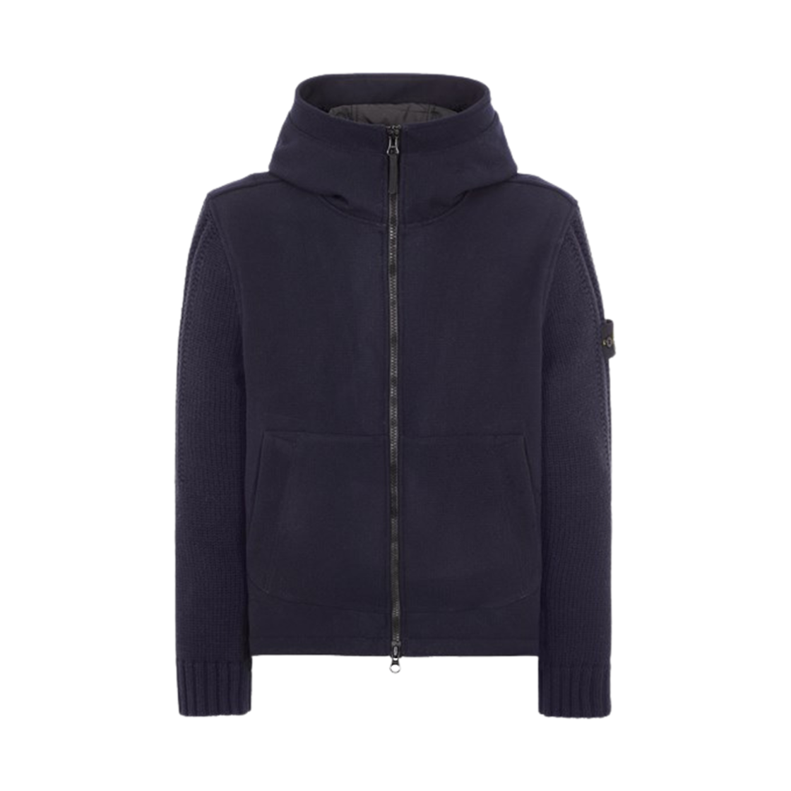 스톤 아일랜드 43930 파노 스페셜 프리마로프트 인슐레이션 테크놀로지 셰틀랜드 니트 후드 블루종 마린 블루 - 23FW