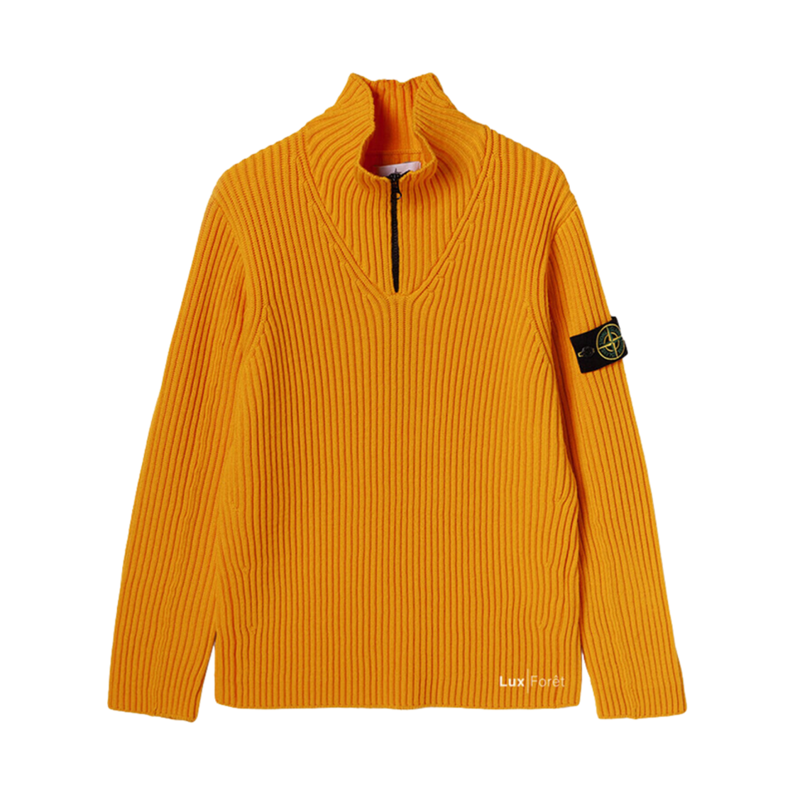 스톤 아일랜드 516C2 와펜 패치 하프 집업 니트 옐로우 - 22FW
