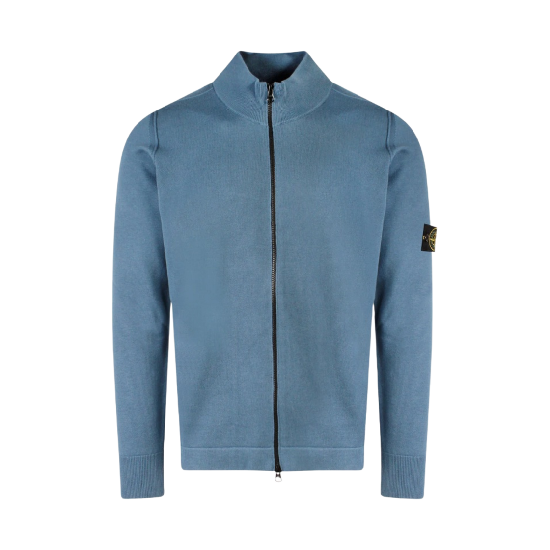 스톤 아일랜드 503B0 와펜 패치 니트 집업 아비오 블루 - 24SS