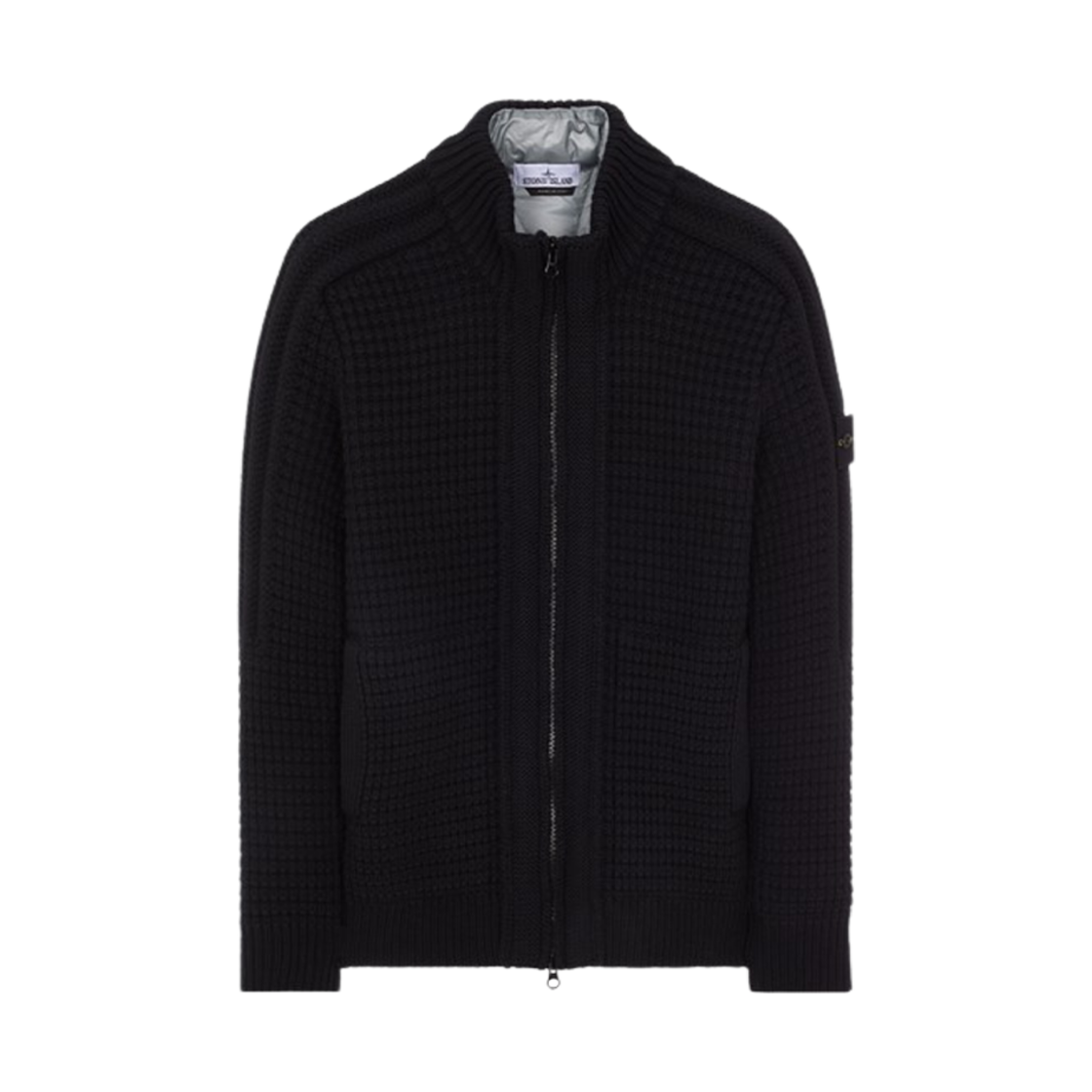 스톤 아일랜드 503B0 와펜 패치 니트 집업 블랙 - 24SS