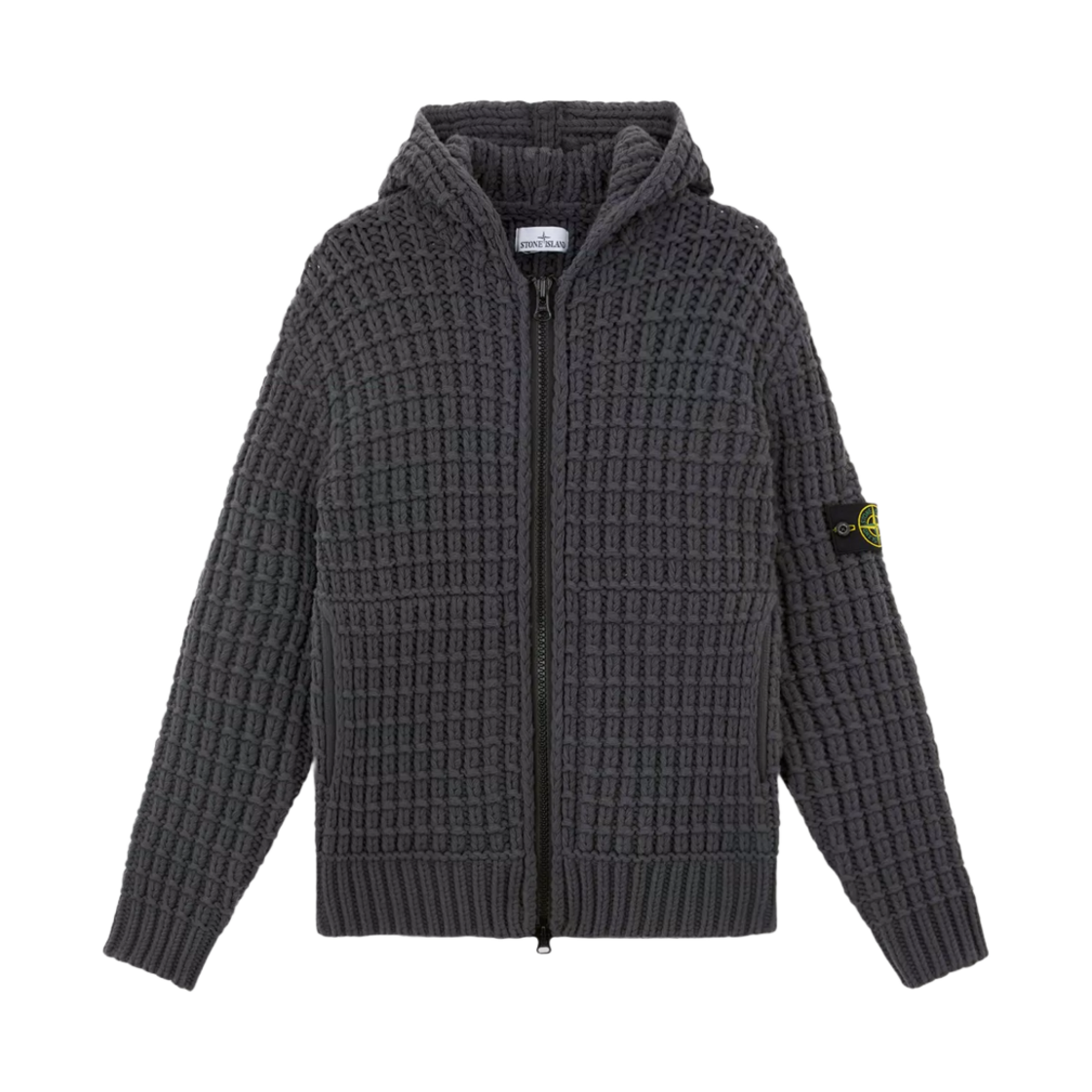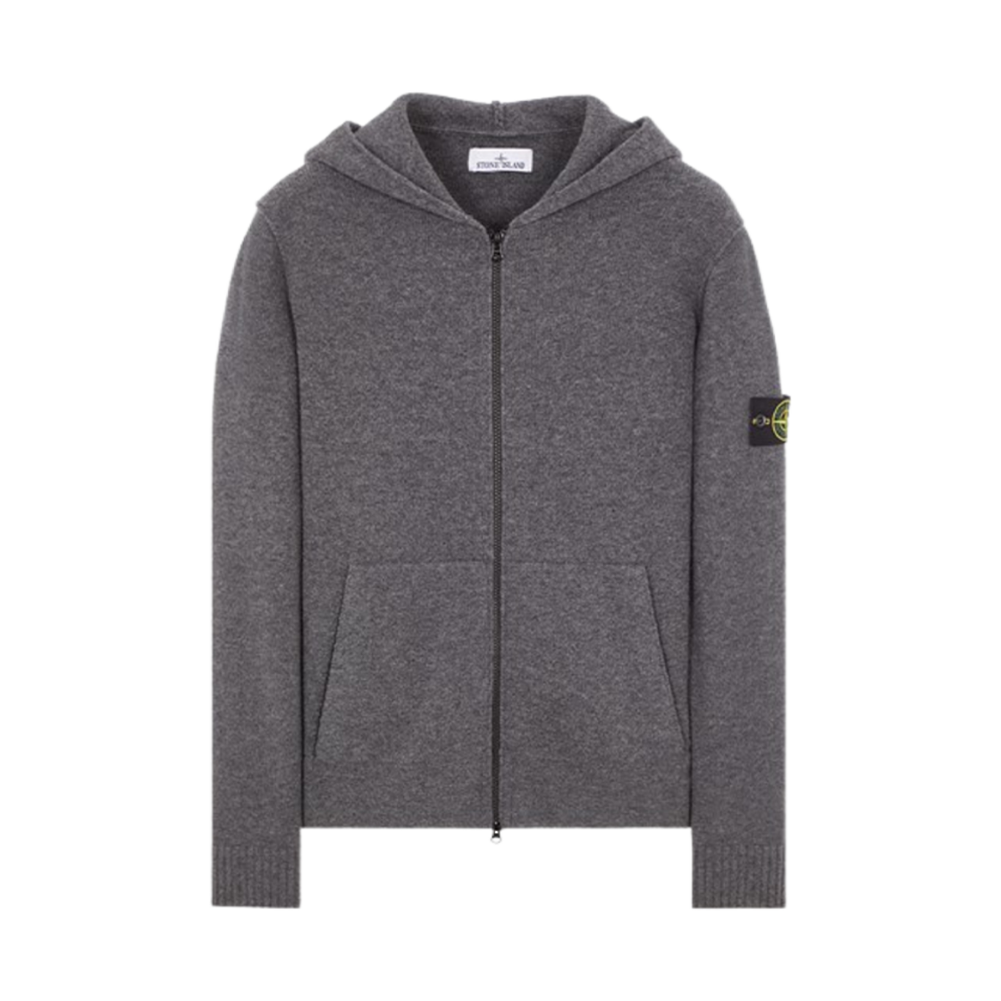 스톤 아일랜드 523B6 질롱 울 후드 가디건 니트 다크 그레이 멜란지 - 23FW