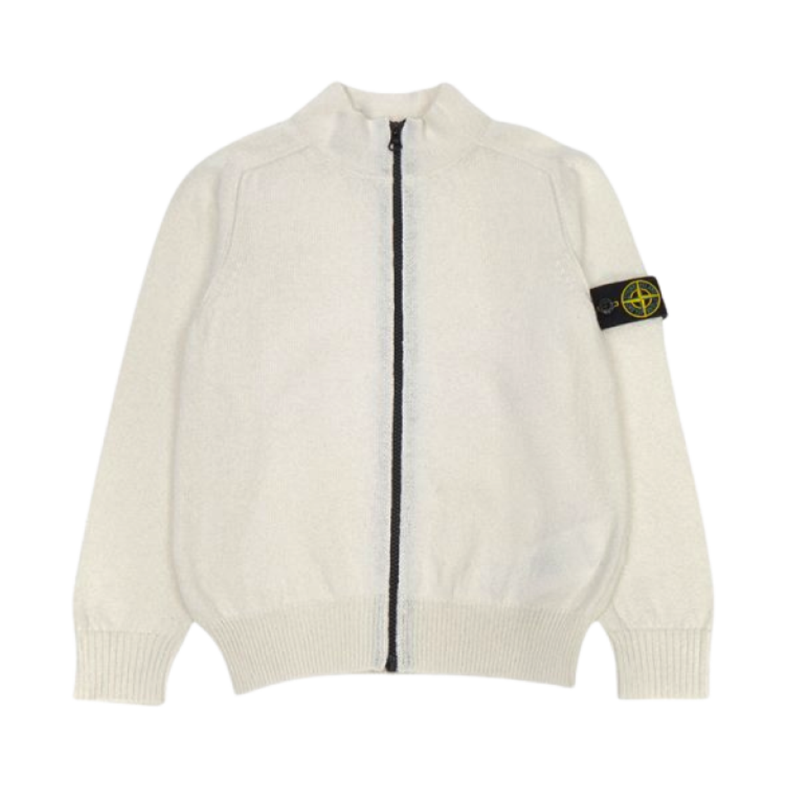 (키즈) 스톤 아일랜드 508D3 스트레치 울 하프 집업 니트 가디건 화이트 - 24SS