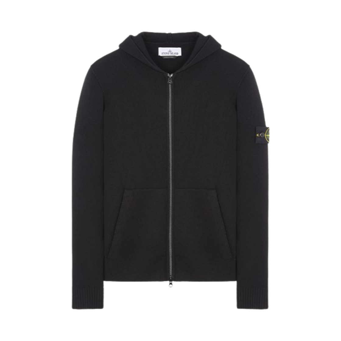 스톤 아일랜드 523B6 질롱 울 후드 가디건 니트 블랙 - 23FW