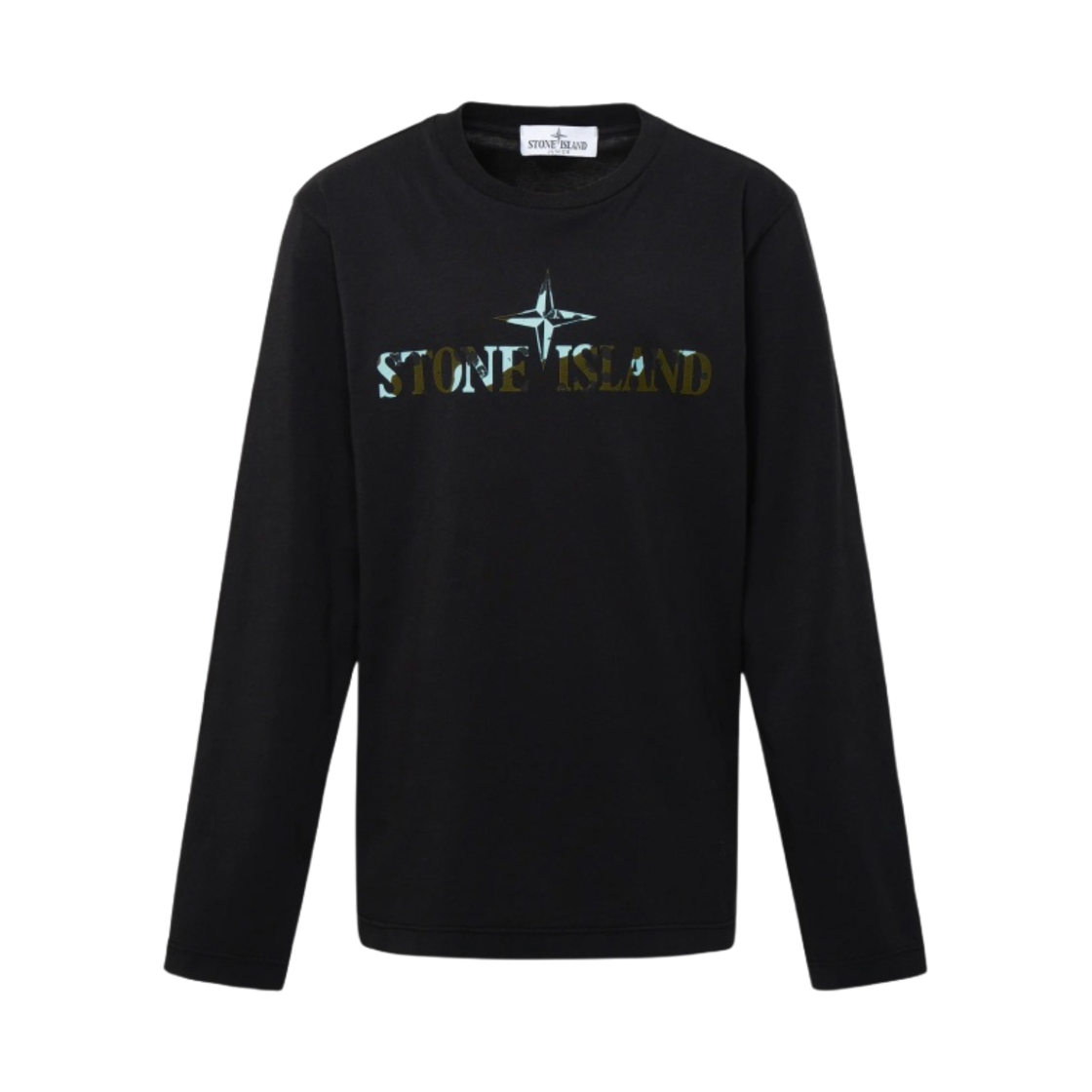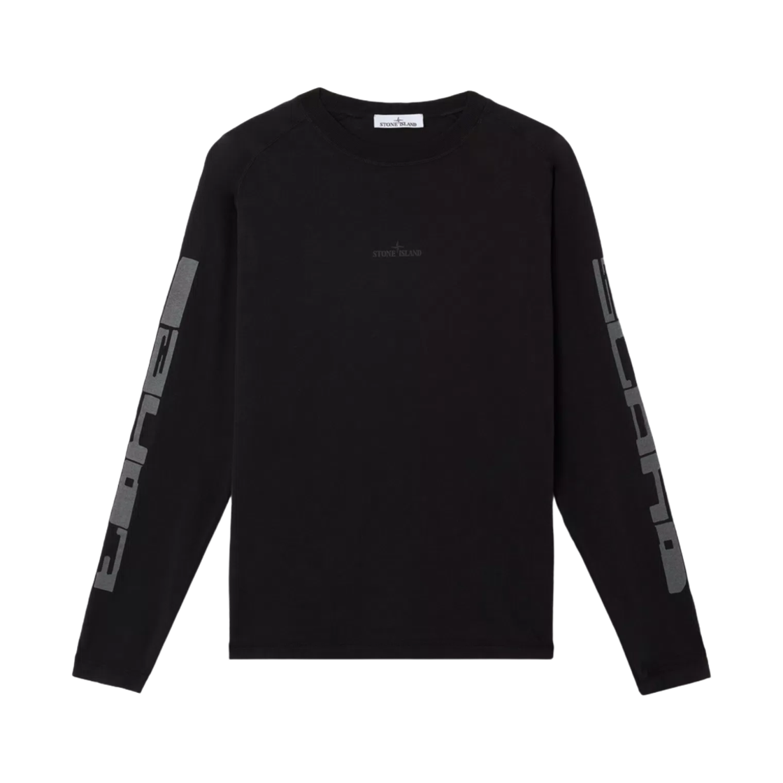 스톤 아일랜드 2100005 오가닉 코튼 저지 슬림 핏 롱슬리브 티셔츠 프린트 블랙 - 25SS