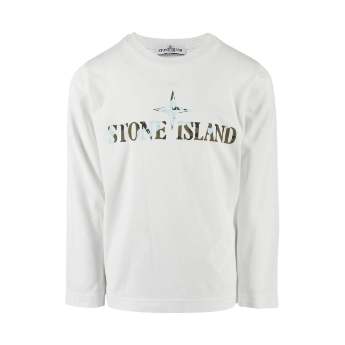 (키즈) 스톤 아일랜드 로고 프린티드 롱슬리브 크루넥 티셔츠 화이트 - 23FW